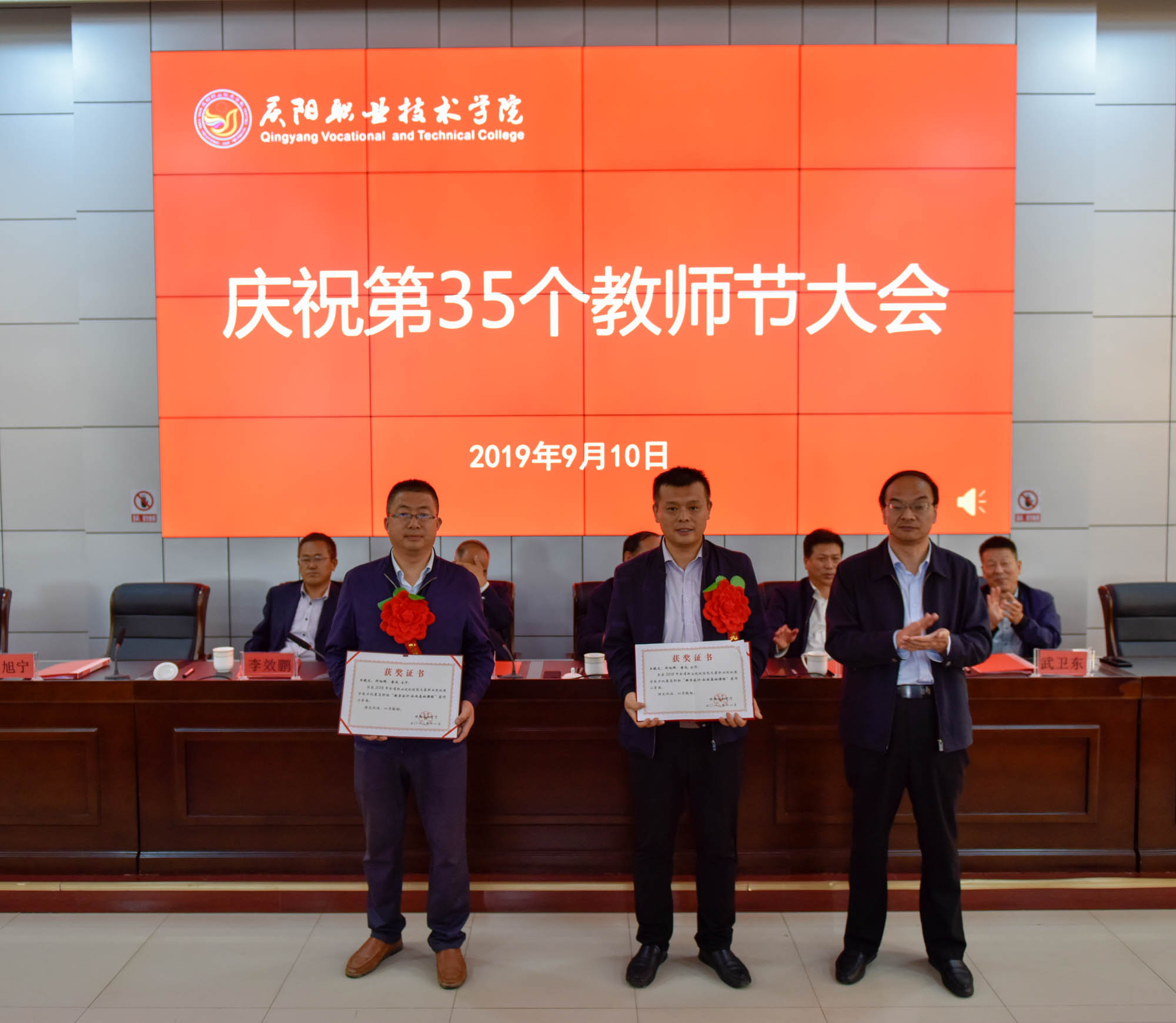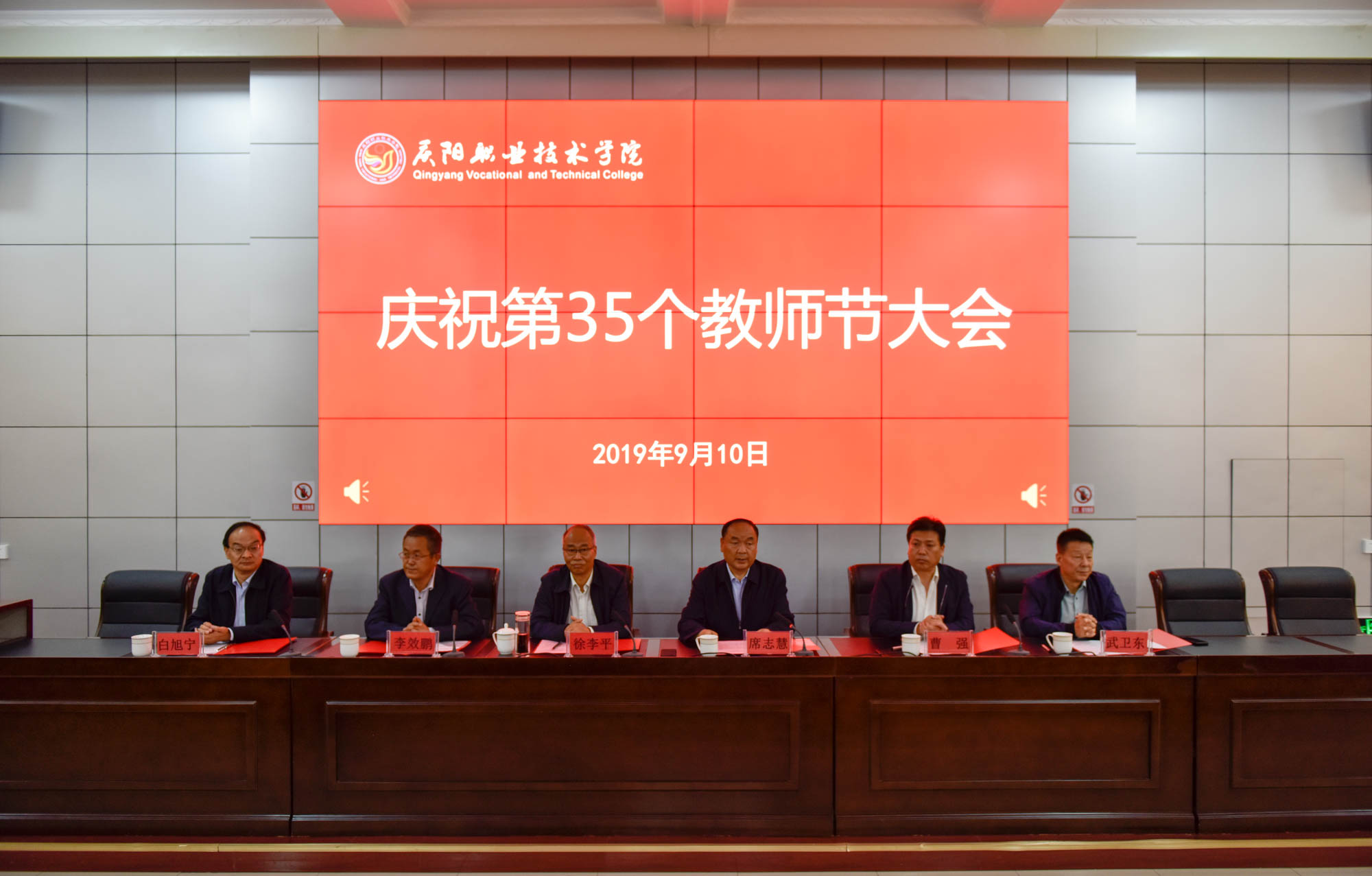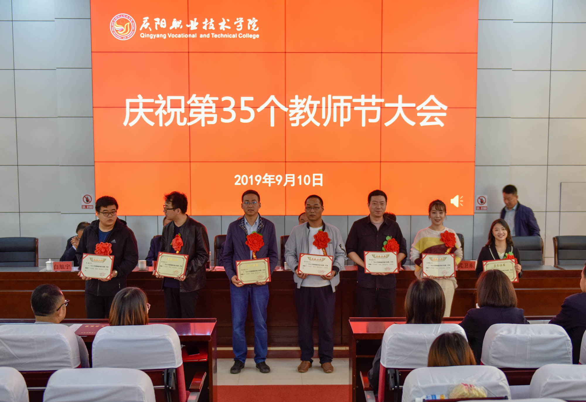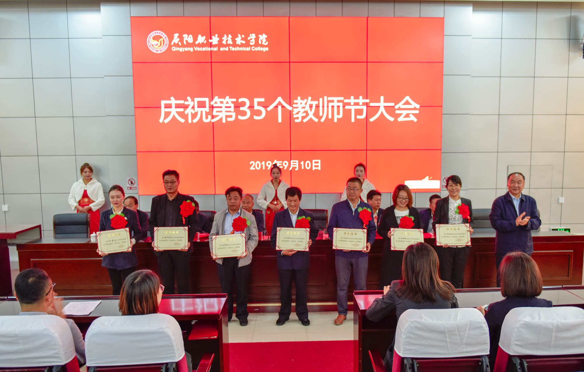在喜迎中秋寄相思,普天同庆迎华诞之际,9月10日,庆阳职业技术学院在多媒体报告厅召开庆祝第35个教师节大会,表彰奖励在教育教学工作中涌现出的模范教师和先进集体。学院领导班子成员,全体教职工及学生代表共350余人参加。大会由院长席志慧主持。