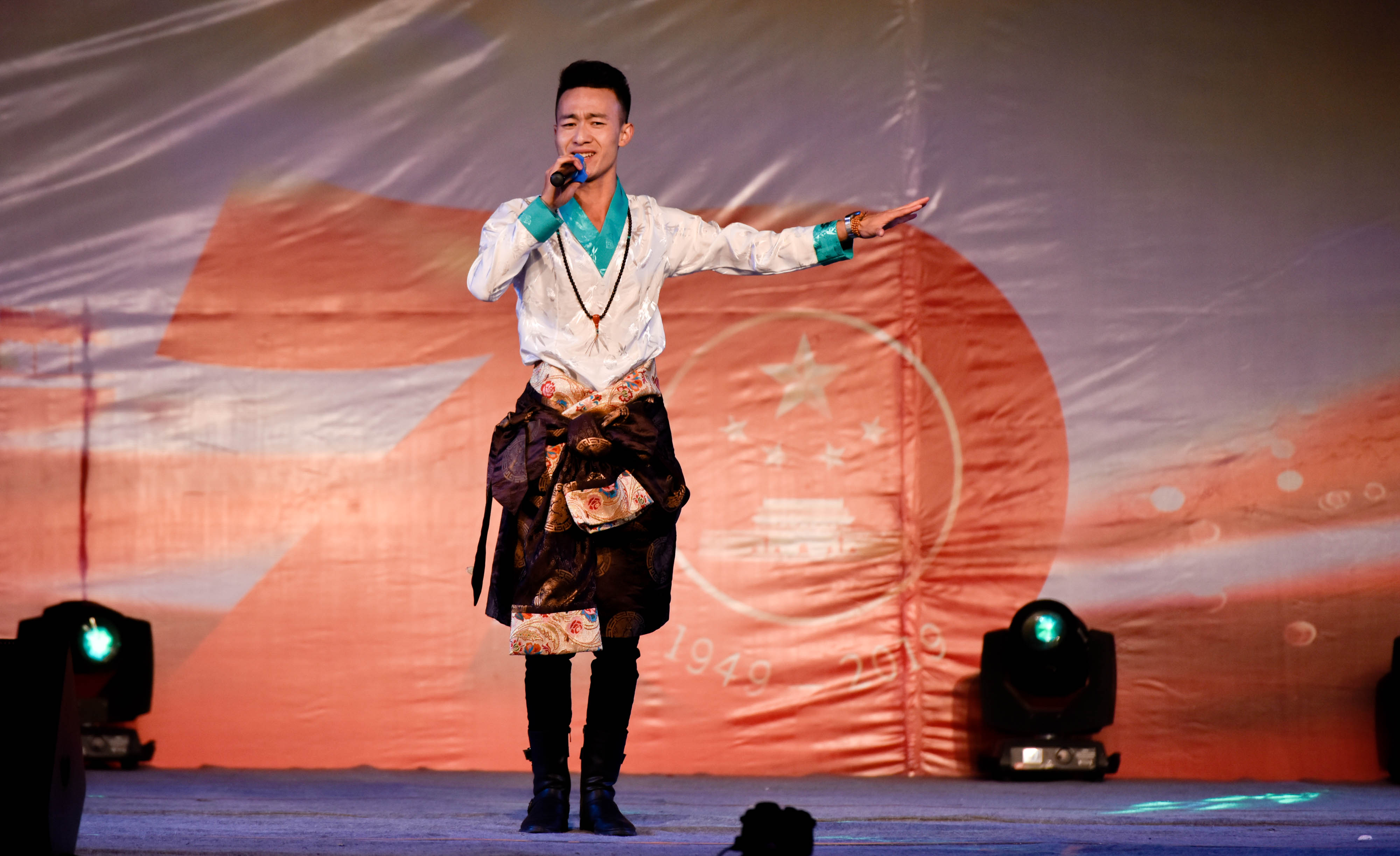开场舞《美丽中国》拉开迎新晚会大幕。歌曲联唱《打起手鼓唱起歌》《北京的金山上》《高楼万丈平地起》让过往的时光历历在目,抒发了师生对新中国的深深热爱,对新时代的无比自豪。黄伟老师独唱的《美丽美丽中国走起来》将晚会推向高潮,引发师生强烈共鸣,赢得了台下阵阵掌声。晚会以祖国发展为主线,从《过雪山草地》到《天路》,再到《高扬的红旗》,高潮不断、精彩连连,绽放着青春的梦想与光芒,让我们深深感受到祖国的繁荣强盛。