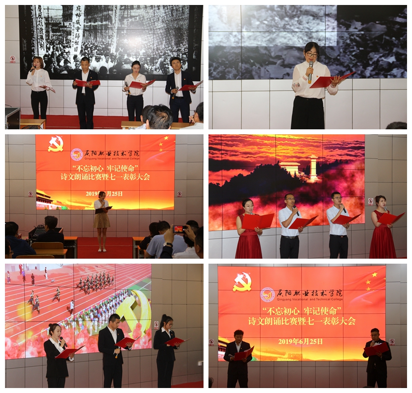 “不忘初心 牢记使命”诗文朗诵比赛是我院“庆祝建党98周年”系列活动的重要组成部分,来自全院10个党支部的 22名选手紧紧围绕“不忘初心 牢记使命”这一主题,紧扣新时代脉搏,追溯红色传承,回顾党的光辉历程。一段段扣人心弦的配乐,一句句铿锵有力的语句,激发了广大党员干部在推进学院建设发展中走前列、当先行的使命感和责任感,赢得了在座所有人的阵阵掌声,全场回味隽永,余韵悠长。经过激烈角逐,建筑工程系党支部获一等奖,艺术教育系党支部、行政党支部获二等奖,思政部党支部、能源工程系党支部、机械工程系党支部获三等奖,基础部党支部、经济管理系党支部、电子信息工程系党支部、体育系党支部获优秀奖。