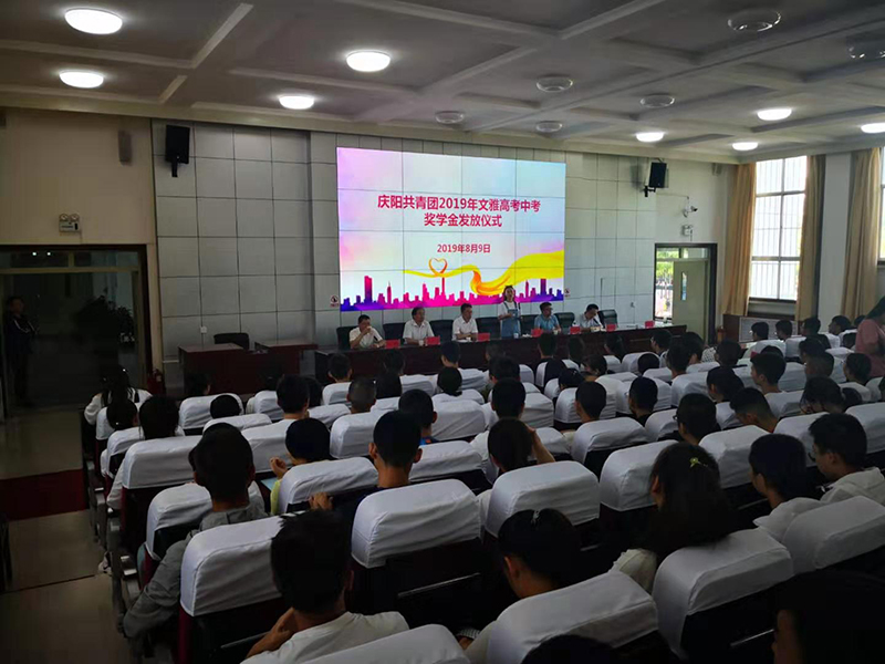 8月9日上午,庆阳市共青团2019年文雅高考中考奖学金发放仪式在我院多媒体报告厅举行。基金会发起人移冰、深圳市文和至雅公益基金会秘书长蒋能三、天水文雅爱心基金会秘书长郭宏伟、市青年联合会主席宋振辉、学院副院长白旭宁、市希望办主任王锋、学院团委相关负责人以及全市受奖励学生共计500多人参加了奖学金发放仪式。仪式由团市委副书记李晓刚主持。