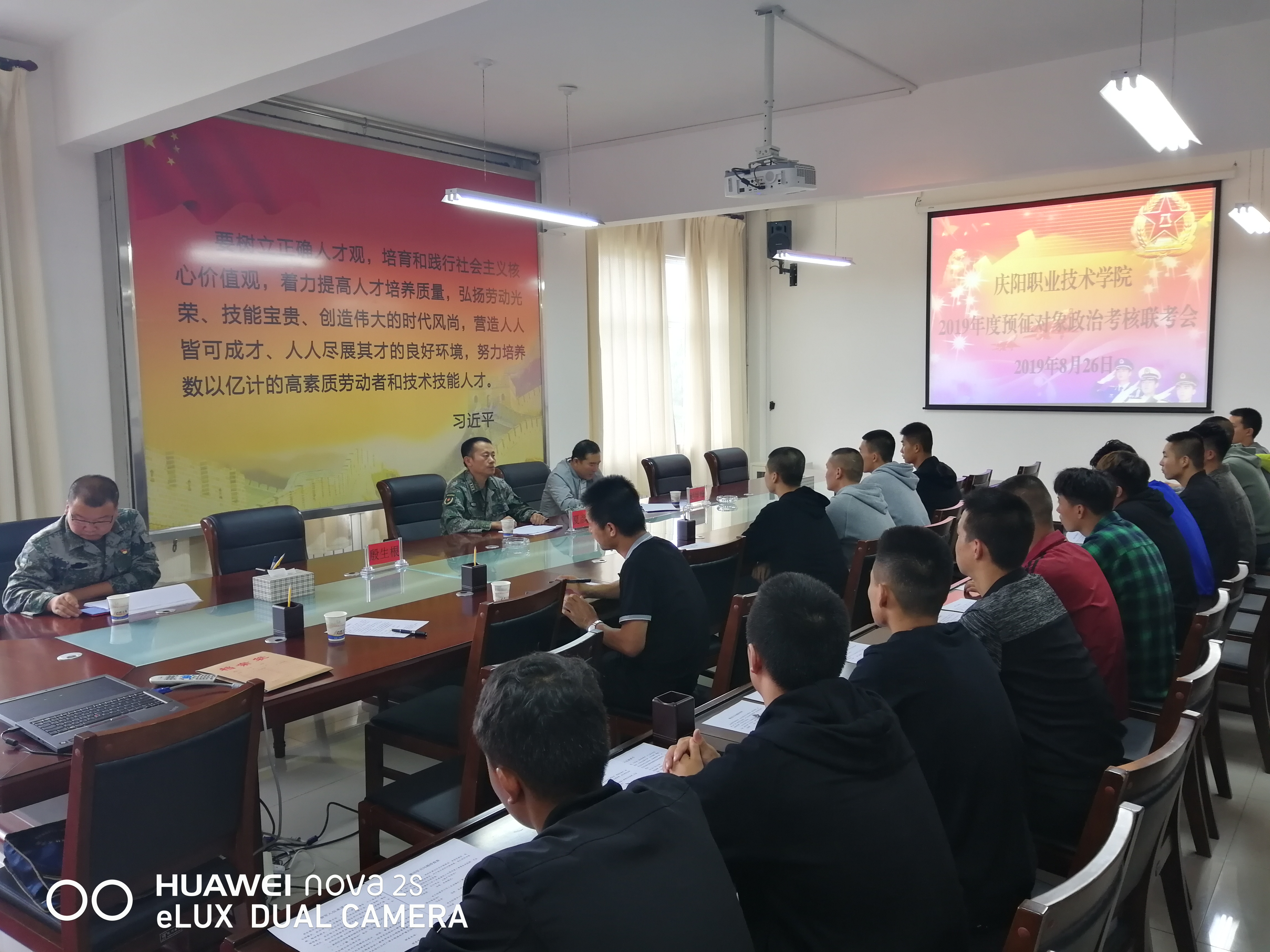 8月26日下午,学院举办了2019年度大学生预征对象政治考核联考会。西峰区常委、区人民武装部政委夏彦文及区公安局等相关负责同志组成考核小组,对我院16名体检合格应征入伍学生进行了考核。