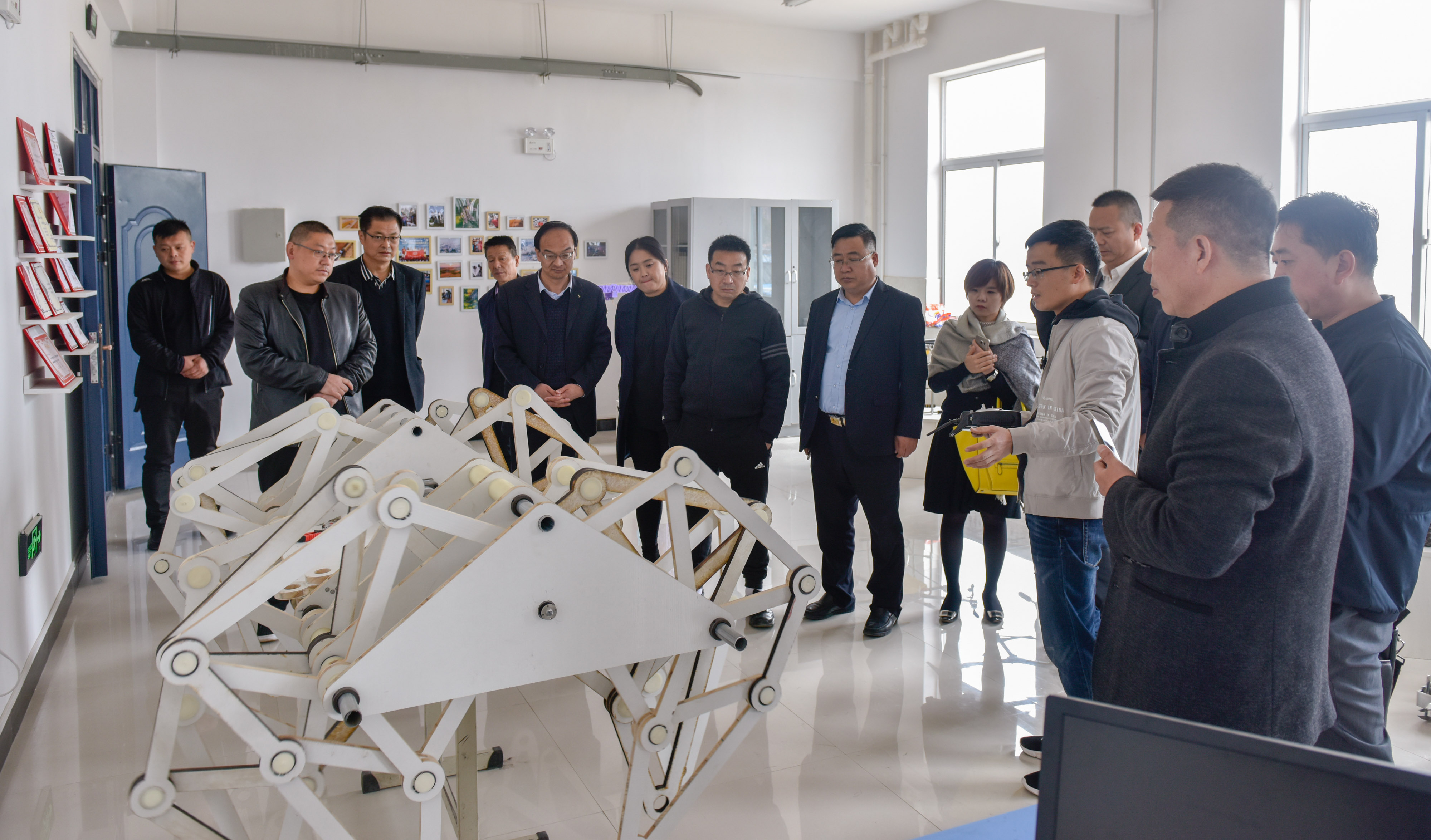随后考察团参观了机械工程系实训基地、校园文化建设、师生餐厅,对我院智能制造创新创业工作室、工业机器人实训室的创新成果农药喷洒无人机、3D打印(多骨诺骨牌自动发牌机,浮雕照片台灯)、对抗机器人、六足仿生机器人、DIY的激光雕刻机,DIY的写字机,CNC雕刻机等智能制造成果表示赞扬。双方就互联网、大数据专业建设及创新创业教育等话题进行了广泛深入的交流。