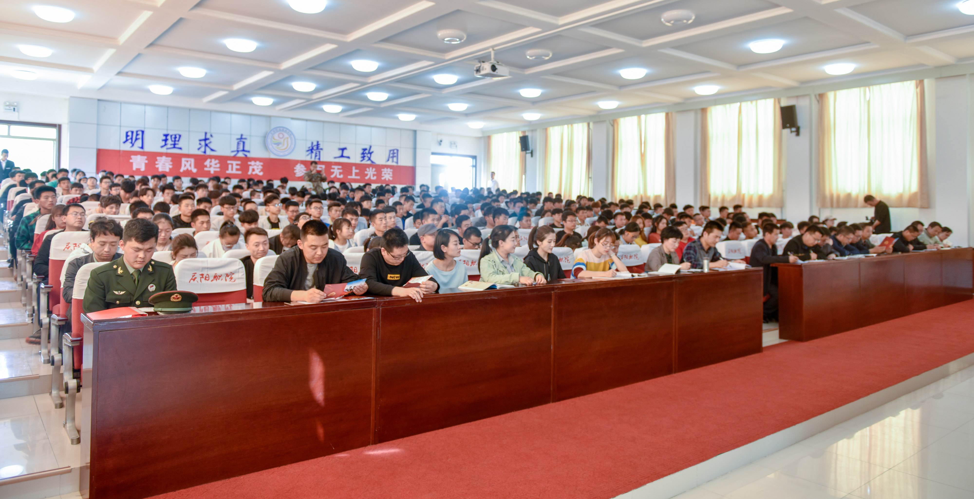 4月18日下午,学院在学术报告厅举行2019年征兵工作启动仪式。庆阳市委常委、庆阳军分区司令员孙武奇、军分区国防动员处处长程世平,西峰区区委常委、人武部政委夏彦文,西峰区人武部部长付廷选,学院党委书记徐李平、副院长白旭宁、征兵工作领导小组各成员单位、全体班主任及学生代表共400余人参加活动。启动仪式由副院长曹强主持。