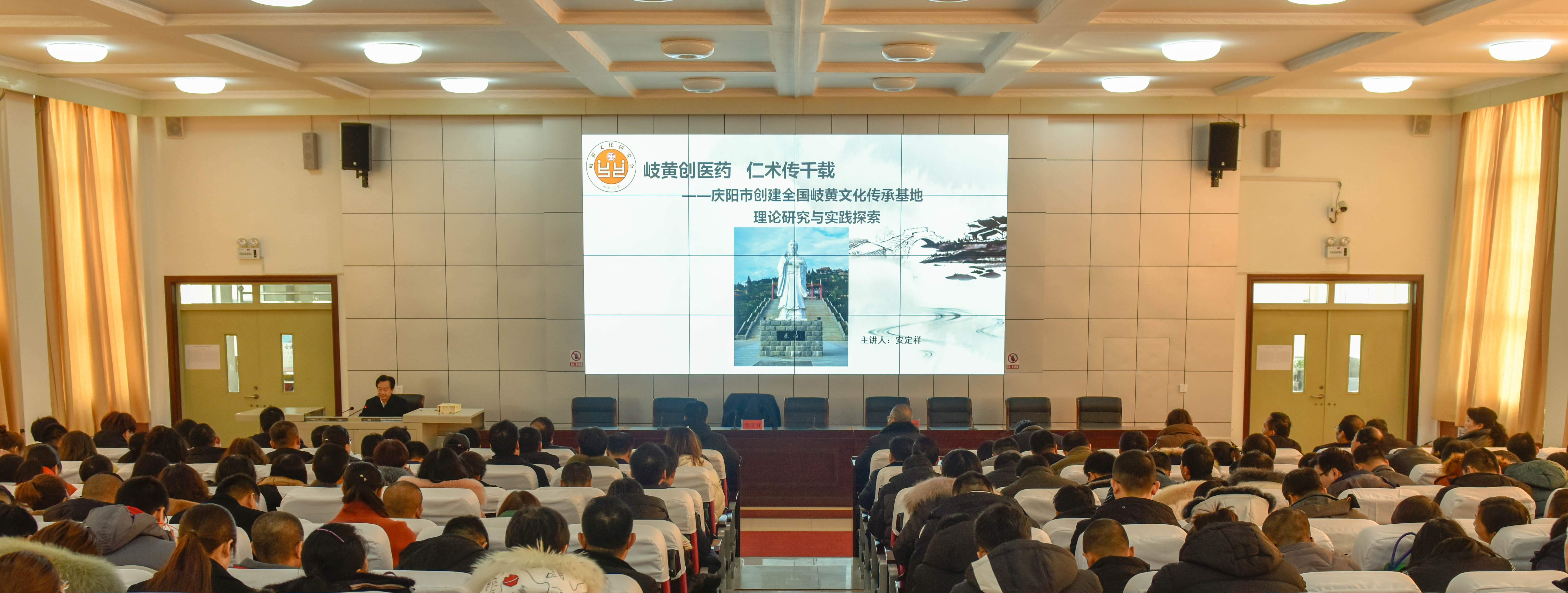 庆阳是岐伯故里、岐黄文化的发祥地。为响应习近平总书记关于建设“健康中国”的号召,传承中医药文化和岐黄养生之道,体现学院对师生的人文关怀,12月24日下午,学院邀请庆阳市人民政府原副秘书长、庆阳市岐黄文化研究会会长安定祥,为师生作“岐黄文化与岐黄养生”的主题报告。学院在家领导、全体教师和部分学生代表共400余人聆听,学院党委书记徐李平主持。