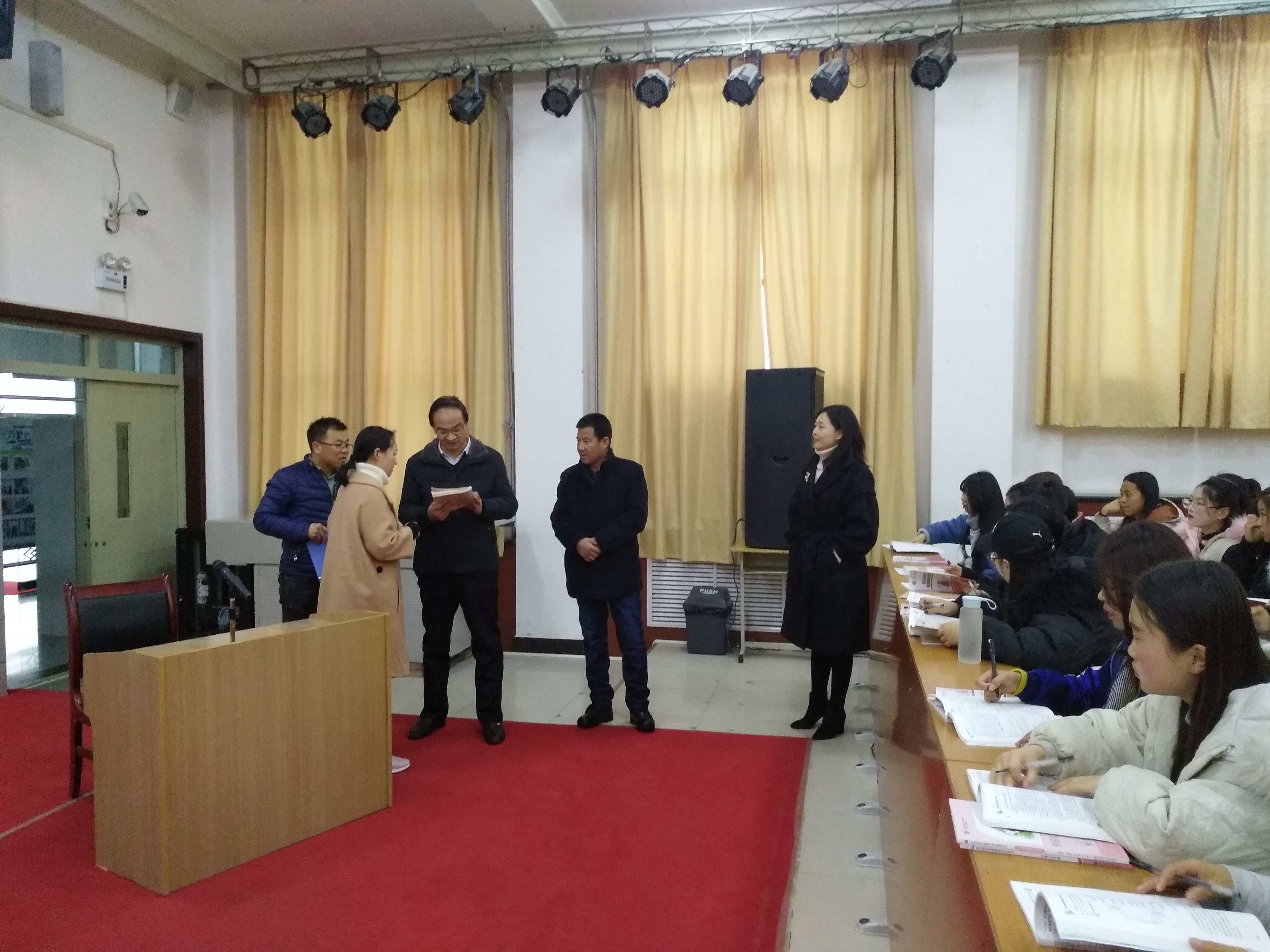 教务处、质管办、纪检处、组织人事处、学工处主要负责人随行进行了检查。