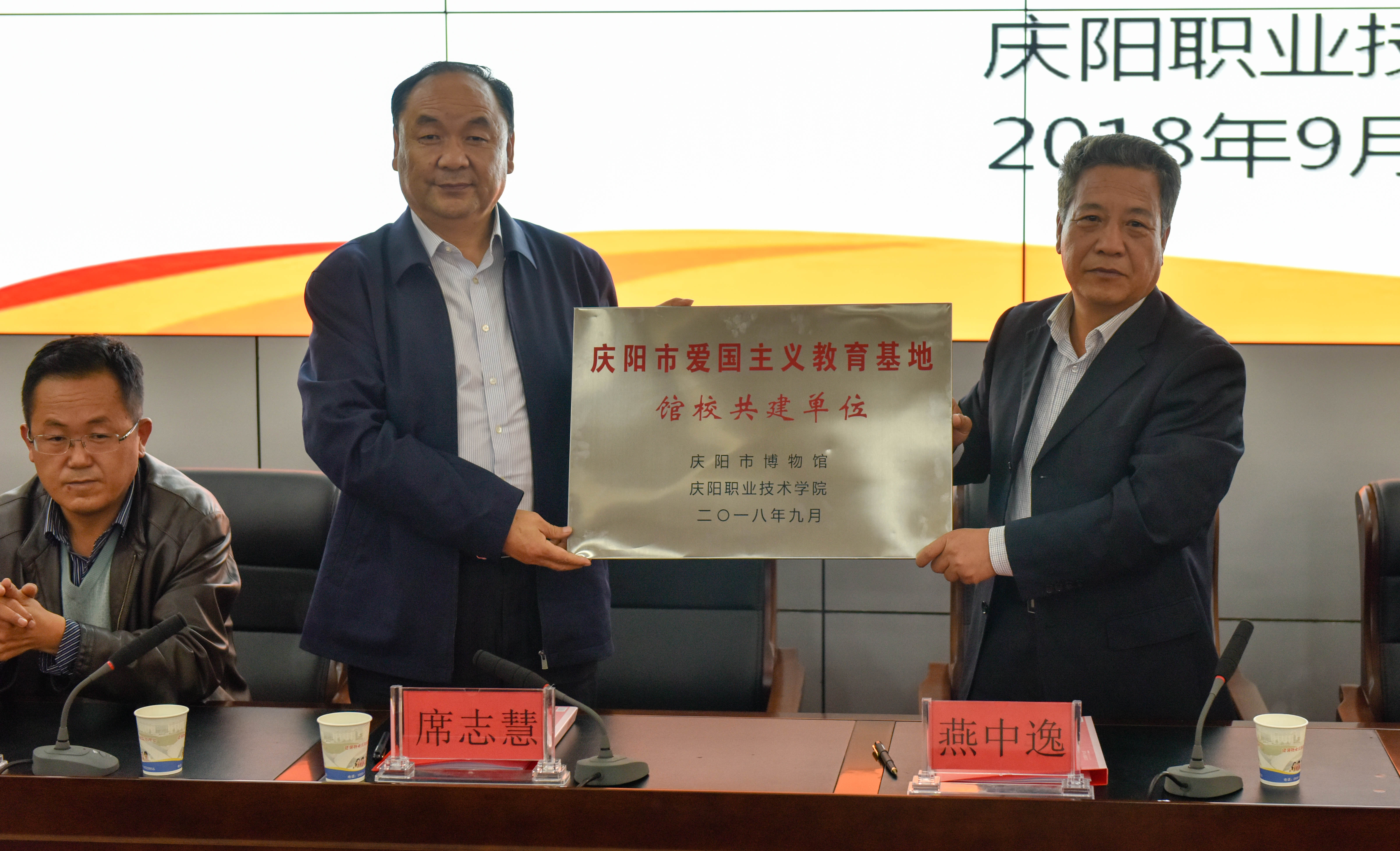 挂牌仪式上,院党委书记徐李平、市博物馆馆长燕中逸分别讲话,院长席志慧与市博物馆馆长燕中逸签订庆阳市博物馆、庆阳职业技术学院馆校共建“爱国主义教育基地”协议,并授牌。