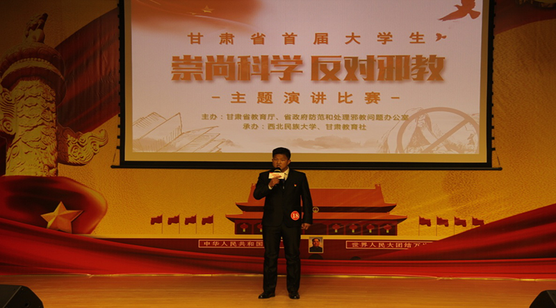 10月26日,由省教育厅、省政府防范和处理邪教问题办公室联合主办的甘肃省首届大学生“崇尚科学 反对邪教”主题演讲比赛在西北民族大学举行。此次比赛共有 省内43所高校参赛,我院2016级机电一体化2班李瑞强同学参赛并荣获二等奖。