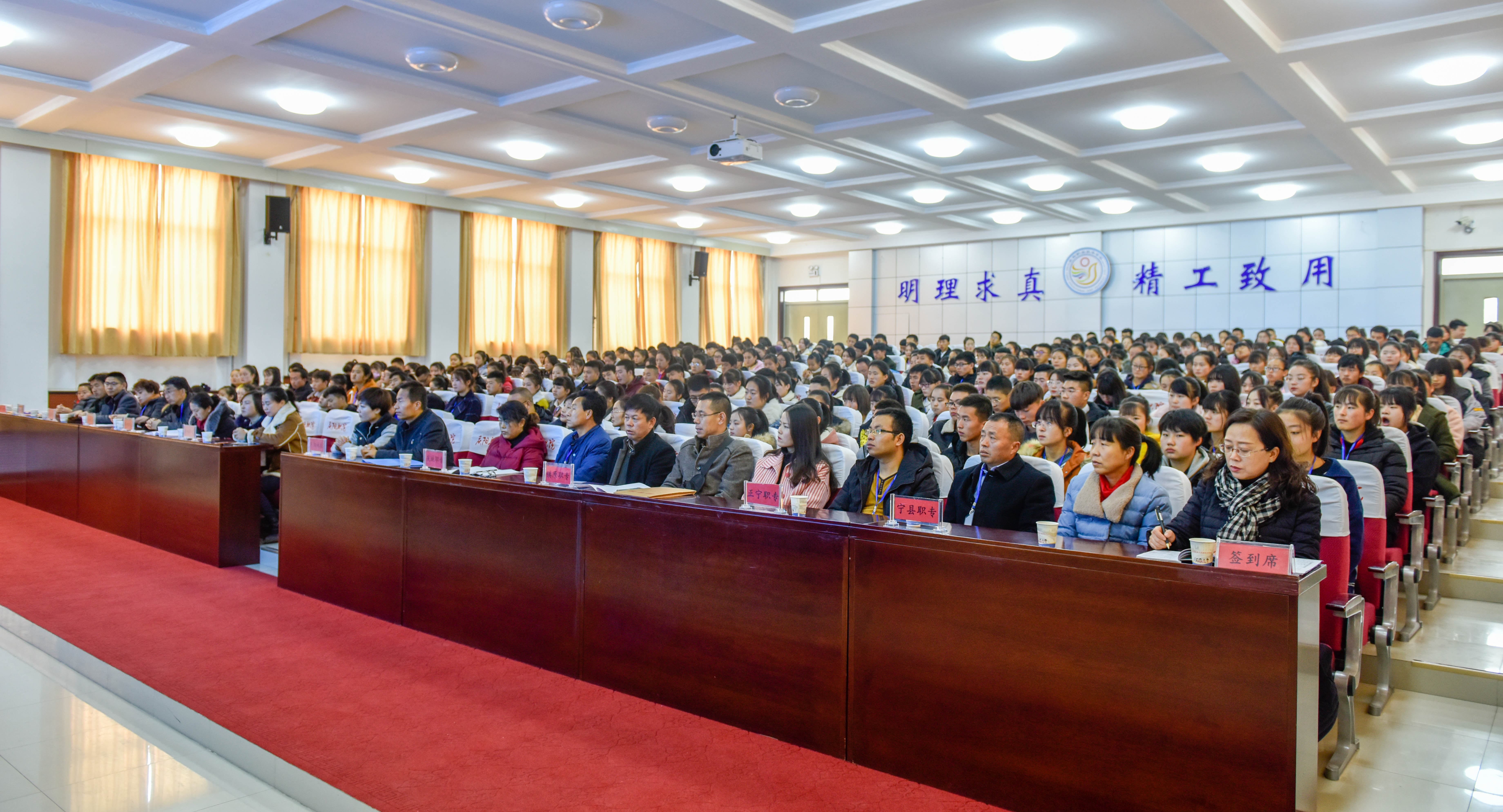 11月26日上午,庆阳市第十三届职业学校学生技能大赛庆阳职业技术学院赛点开幕式在学院多媒体报告厅举行。赛点巡视组组长、市教育局副县级调研员冯国柱,巡视组副组长、市招办副主任唐继研,学院院长席志慧、副院长白旭宁出席会议。市教育局职成科干部、各参赛学校领队、指导教师、参赛选手、赛项评委及工作人员500余人参加。赛务组组长、教务处处长杨琳主持开幕式。