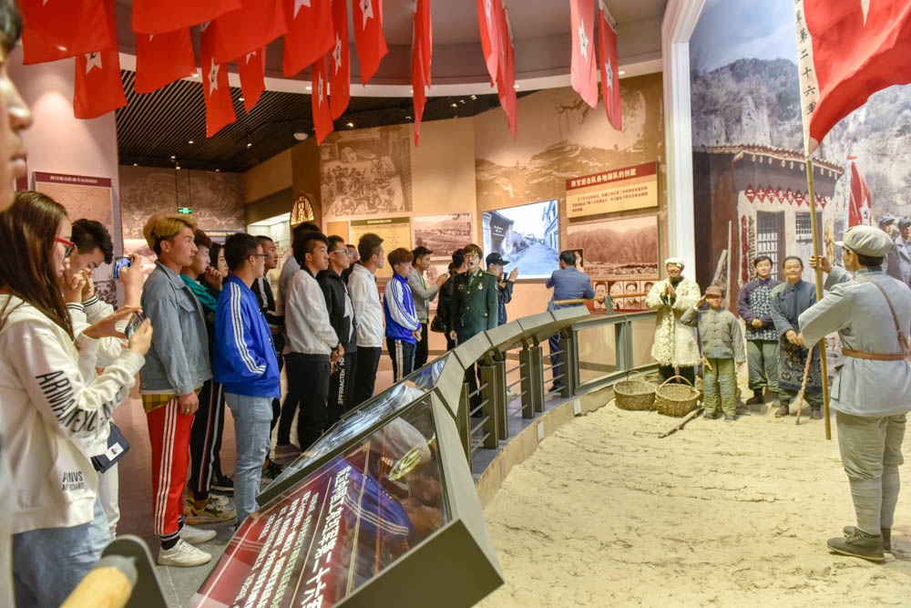 在南梁革命纪念馆里,跟随着讲解员的解说和引导,师生在一幅幅影像资料和一件件历史实物前驻足端详,追忆曾经硝烟弥漫的战场里刘志丹、谢子长、习仲勋等老一辈革命先烈的事迹和丰功伟绩,学习他们在革命斗争中形成的革命精神、优良作风。