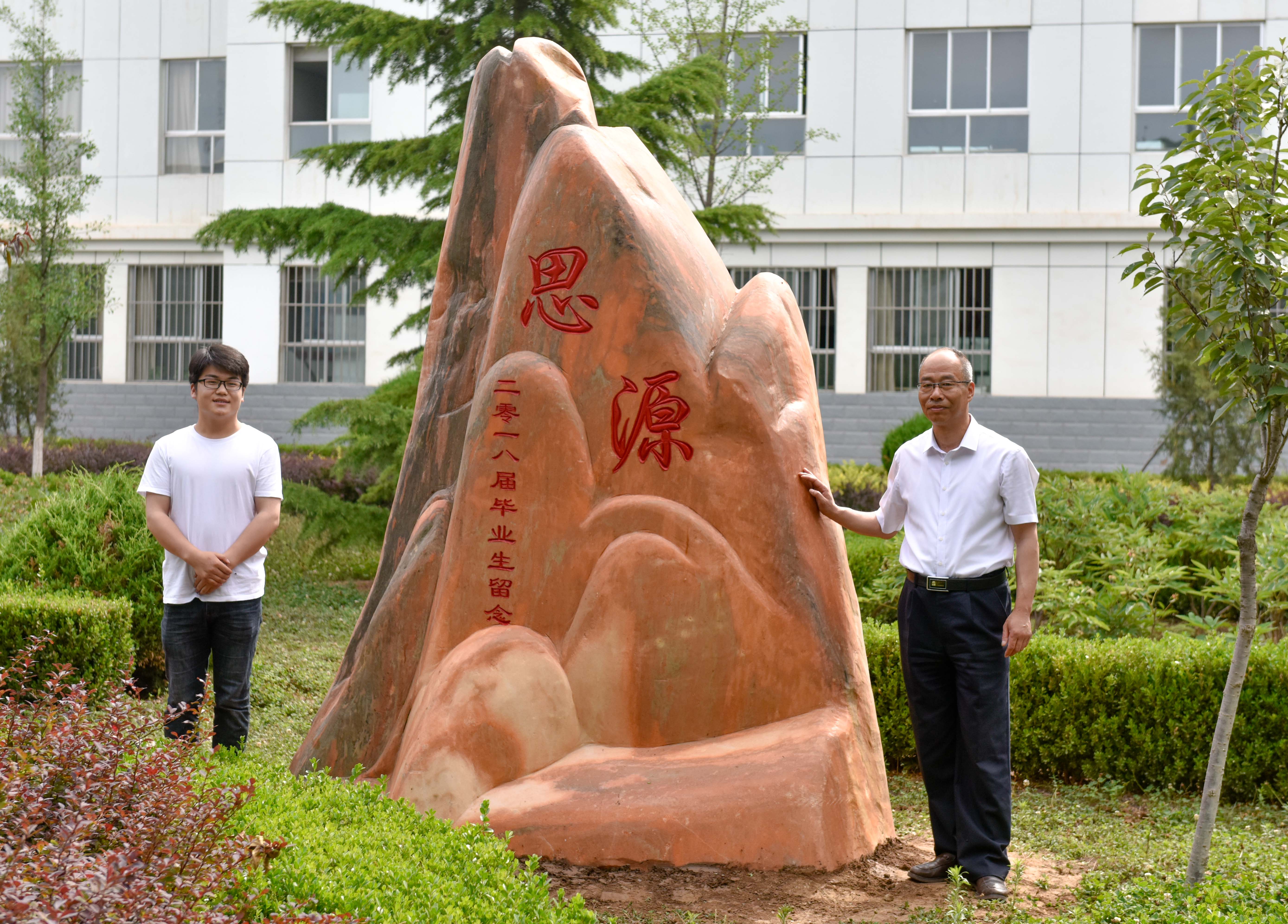 仪式最后,学院党委书记徐李平与2018届毕业生代表杨彦军为纪念石揭幕留影,感恩纪念石上“思源”两个大字从此留在了毕业生的影像当中,寓意着全体毕业生饮水思源、感恩母校的拳拳赤子之情。