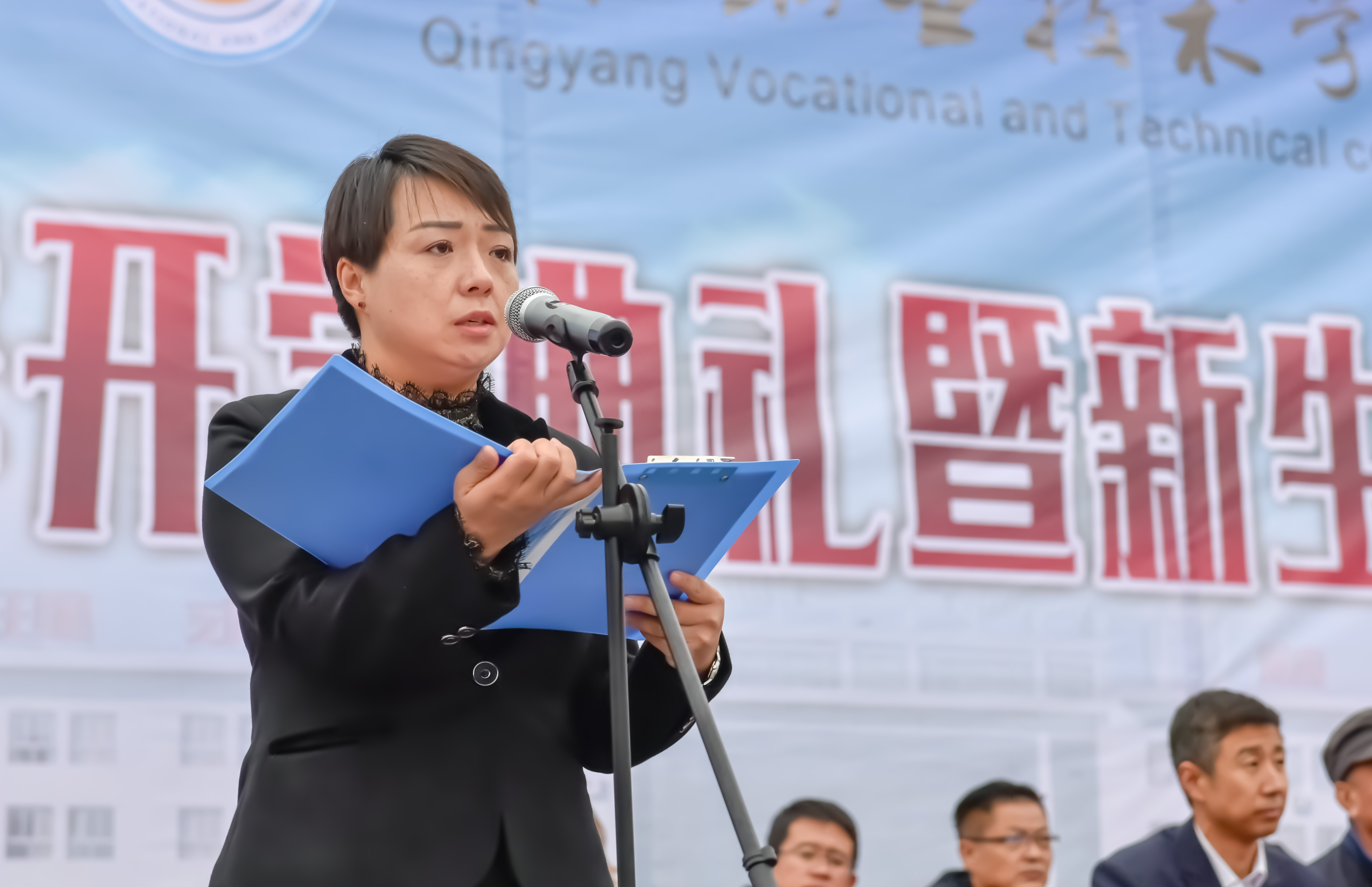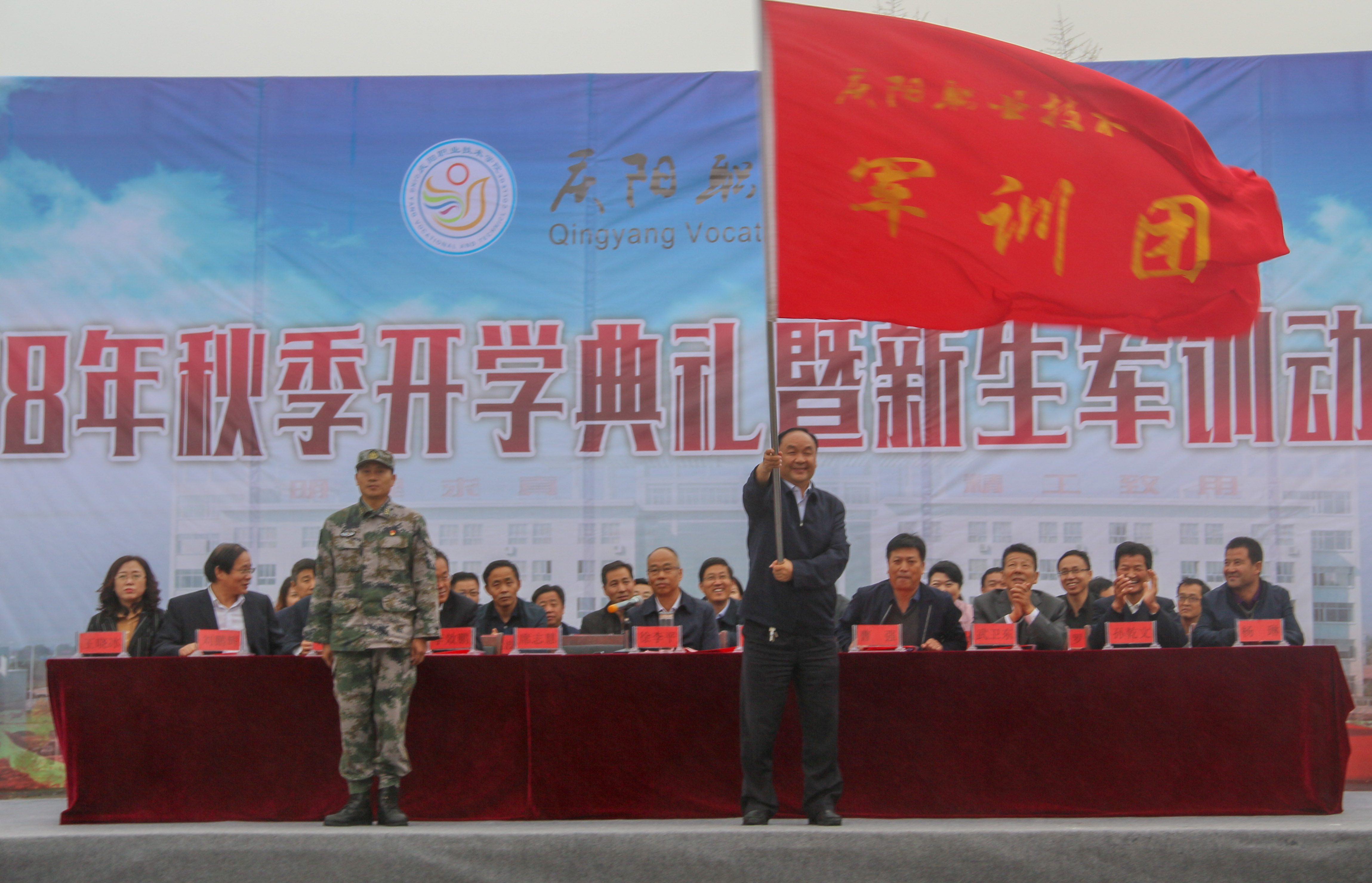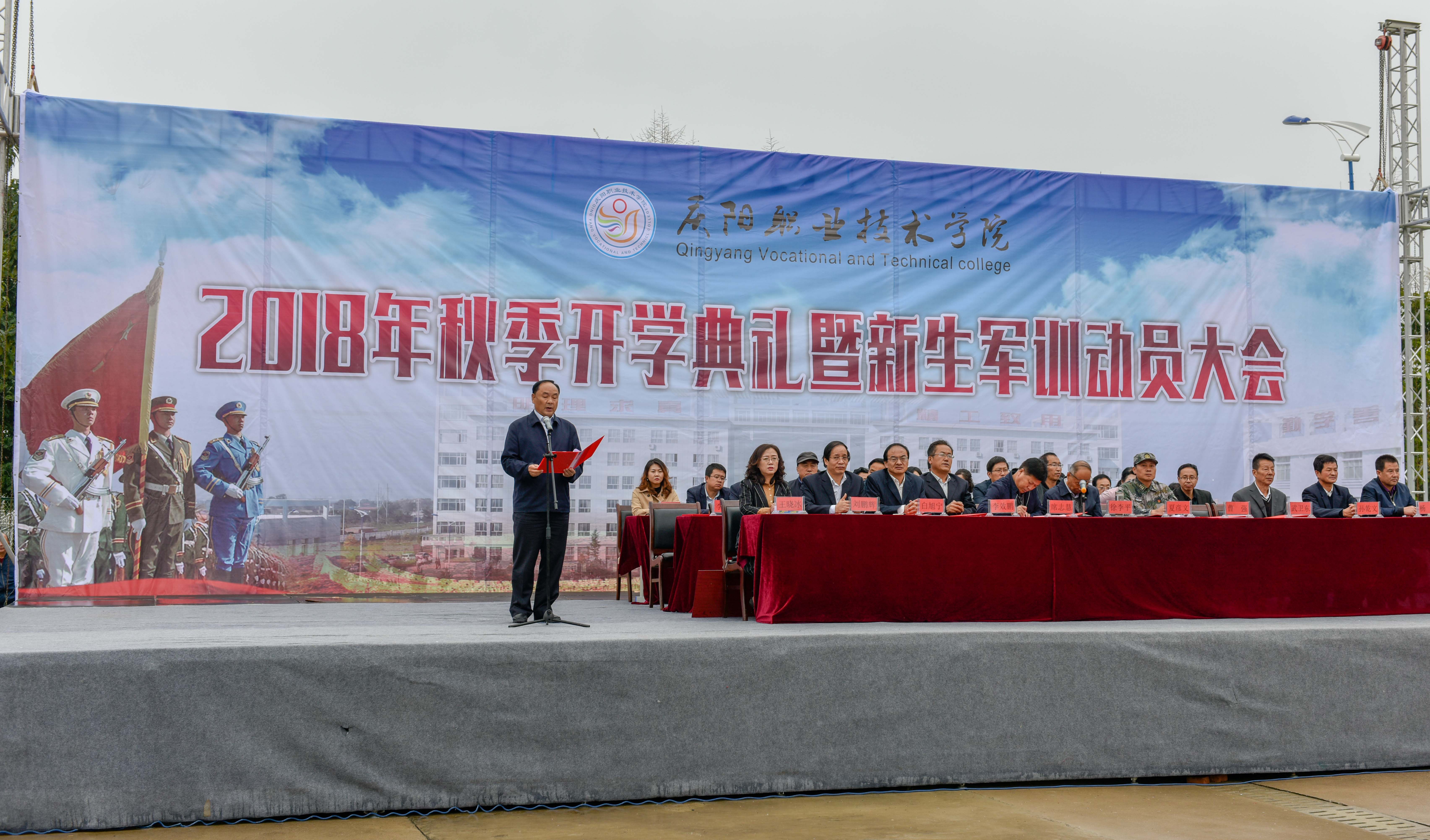 9月17日,庆阳职业技术学院隆重举行2018年秋季开学典礼暨军训动员大会。院党委书记徐李平,院长席志慧,西峰区人民武装部副政委夏彦文,副院长李效鹏、曹强、白旭宁、武卫东出席仪式。徐李平主持仪式,师生3500余人参加。