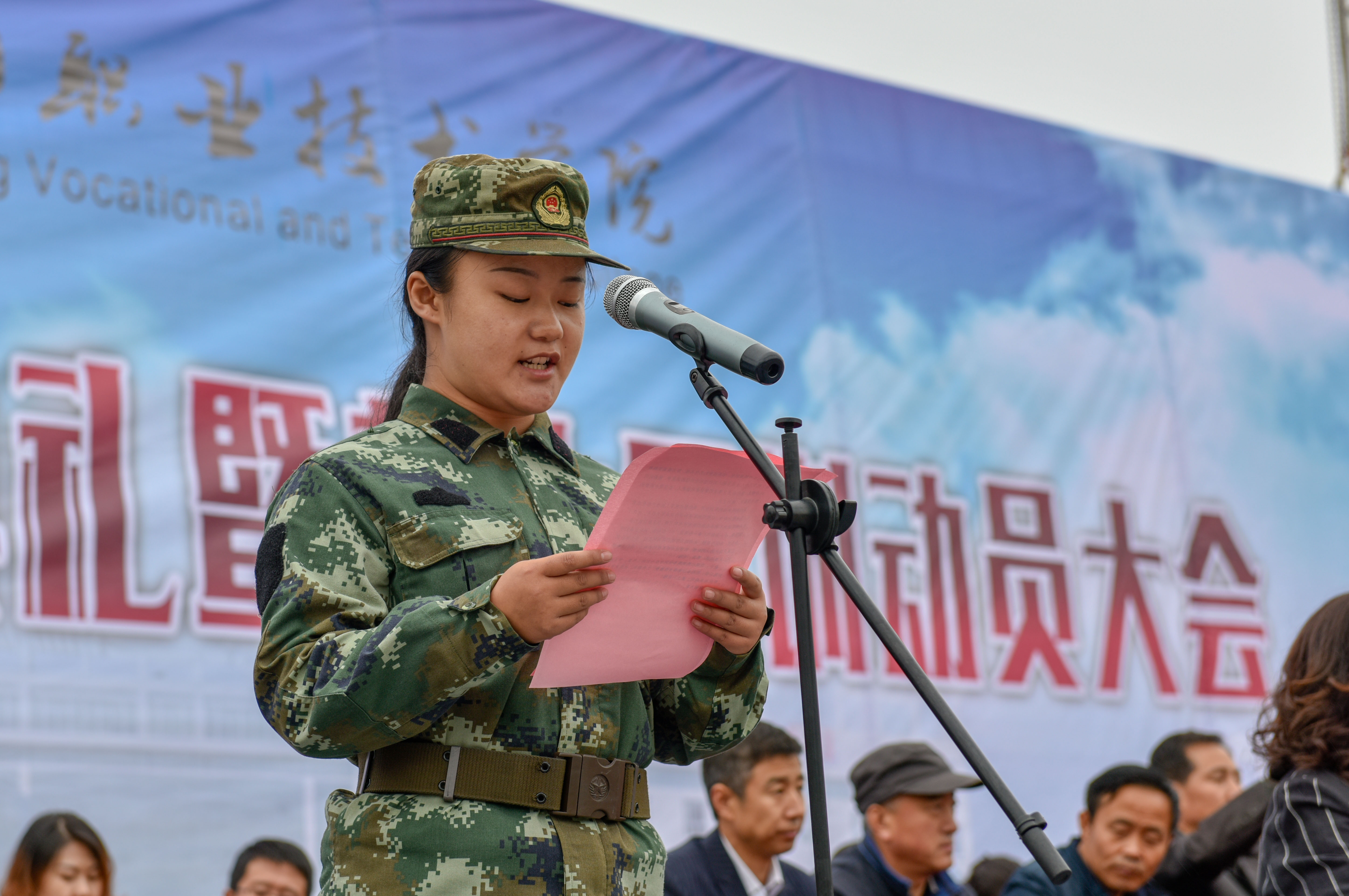 席志慧在致辞中寄语新生:一是修好“德”,做一个有道德有修养的人。从尊重师长、排队打饭、诚信考试、帮助同学、团结室友等小事做起,养成影响一生的良好品德。二是修好“法”,做一个遵纪守法的人。要多换位思考问题,妥善解决矛盾分歧。三是修好“时”,做一个惜时如金的人。倍加珍惜青春年少的大好时光,在读书学习、实训操作、体育锻炼及文艺公益中度过大学生活。四是修好“术”,做一个有专业素养的人。用虔诚的态度对待自己的专业,高标准、严要求,精钻细研专业知识、千锤百炼专业技能,全面提高综合素质。把自己锤炼成一个有工匠精神的技术技能型人才。以警句“天下难事,必作于易;天下大事,必作于细。”告诫新生成功的背后,永远是艰辛的汗水,要求新生在军训生活中发扬不怕苦、不怕累,不抛弃、不放弃的精神,以坚韧的意志品格、严明的组织纪律性和团队协作精神,为大学生活交出第一份满意的答卷。