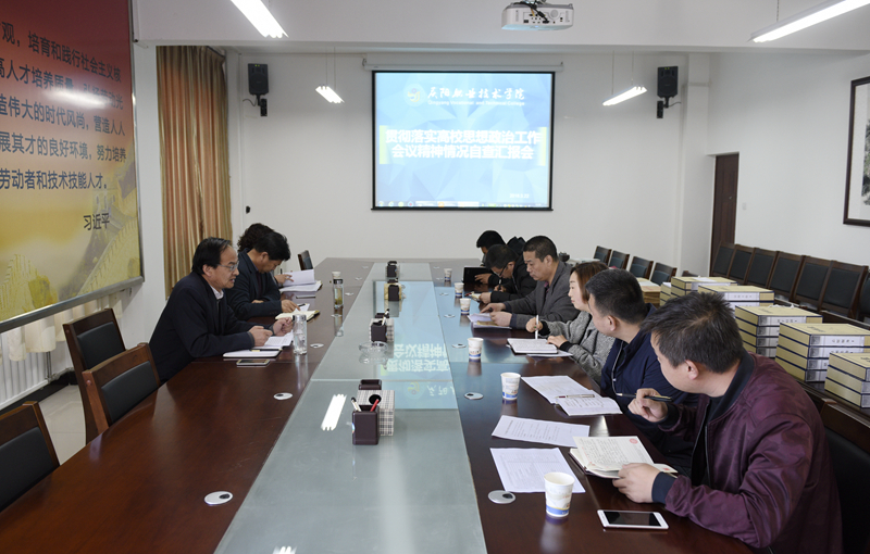 会上,党政办、组人处、宣统部、教务处、学工处、团委、思政部负责人对各部门思想政治工作开展情况作了汇报,并针对工作中存在的问题提出整改意见。同时,围绕“构建学院思政育人工作大格局”,与会人员积极建言,经过交流,靠实了责任,明确了任务,要通过全方位全过程的思想政治工作,逐步建立高效、暖心的育人机制。