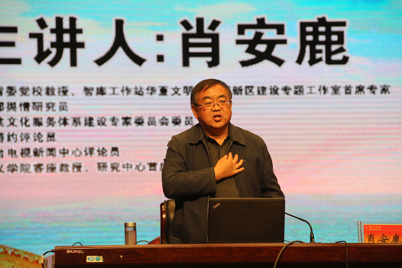 报告会上,中共甘肃省委党校教授、甘肃省公共文化服务体系建设专家委员会委员、甘肃日报特约评论员、省广电总台新闻中心特约评论员肖安鹿以《贯彻落实党的十九大精神 牢牢把握意识形态工作领导权》为题,从正确认识意识形态工作的极端重要性和牢牢掌握意识形态工作领导权两个方面,贯通历史和现实、关联国际与国内、结合理论与实际,通过图、文、数的形式和渊博的知识、缜密的思维、开阔的视角、精辟的论述,深入阐释了坚定理想信念挺起精神脊梁、推进马克思主义中国化时代化大众化、关注传统继承和教育导向、坚持正面宣传、加强话语体系建设、坚持正确舆论导向、增强阵地意识、重视网络建设、夯实社会主义意识形态的社会基础等内容,带领大家走出了意识形态工作“务虚” “空谈”的误区。肖教授旁征博引,幽默诙谐,生动形象,通俗易懂,既有理论高度,又有很强的现实针对性和指导性,“守土有责、守土负责、守土尽责”的号召更是引发了听者的热烈反响和强烈共鸣。