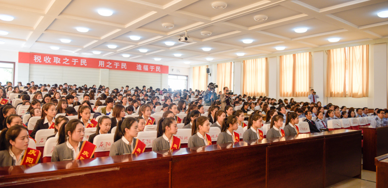 活动仪式上,仲相瑨副局长从税收的本质和职能出发,对税收在国家经济建设以及国防、科研、教育、扶贫、基础设施建设的重要作用等方面进行了动员讲话,鼓励同学们积极学税、知税,成为税法的志愿宣传员。