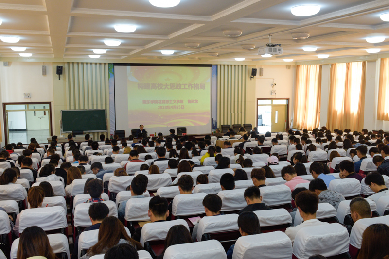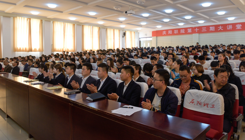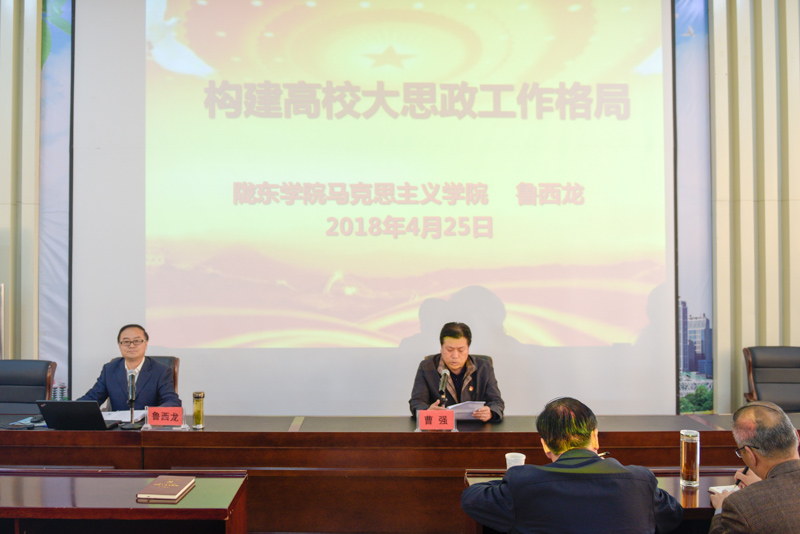 4月25日下午,学院邀请陇东学院马克思主义学院党总支书记、院长鲁西龙教授作了题为“构建高校大思政工作格局”第十三期“庆阳职院大讲堂”。学院在家领导、中层干部、全体教师、团学干部、阳光军训中心工作人员共400余人聆听,副院长曹强主持会议。