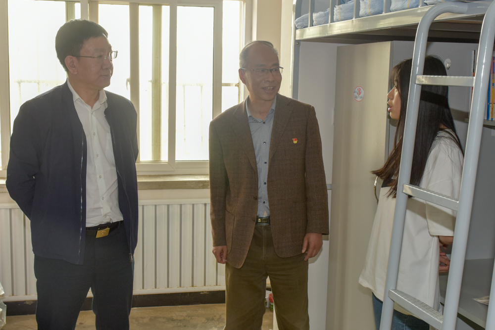 会前,督察组一行巡察校园环境,深入学生餐厅、学生宿舍等校园安全重点部位进行了检查。雷江红同志与学生亲切交谈,详细了解学生的学习、生活、家庭等情况,并叮嘱学院领导要重视贫困学生的资助帮扶工作,充分发挥庆阳红色资源的育人功能,让外地学生在庆阳职院感受到老师浓浓的爱心和"家"一样的温暖。
