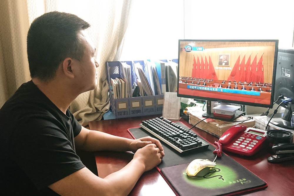 5月4日上午,习近平总书记出席纪念马克思诞辰200周年大会并发表重要讲话。庆阳职业技术学院班子成员、中层干部30余人在行政会议室,教师在各自办公电脑观看了现场直播。学院思政课也搬进了多媒体报告厅,师生400余人共同接受了一堂生动的马克思主义教育。习近平总书记的重要讲话在学院师生中引发了热烈反响,振奋着全体师生的精气神。