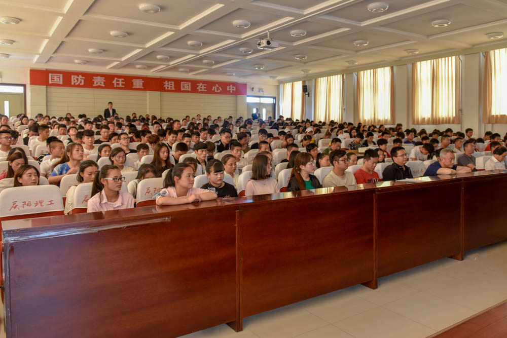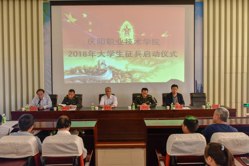 为贯彻全国、全省大学生征兵工作电视电话会议精神,激励广大学子热爱国防、崇军尚武,投身富国强军伟业。5月17日下午,庆阳职业技术学院2018年度征兵工作启动仪式在我院多媒体报告厅举行。西峰区武装部政委夏彦文、军事科科长张天晶、学院党委书记徐李平、副院长曹强、学院征兵工作领导小组各成员单位负责人、各系系主任、全体班主任及团学干部等400多人参加了启动仪式。副院长白旭宁主持启动仪式。