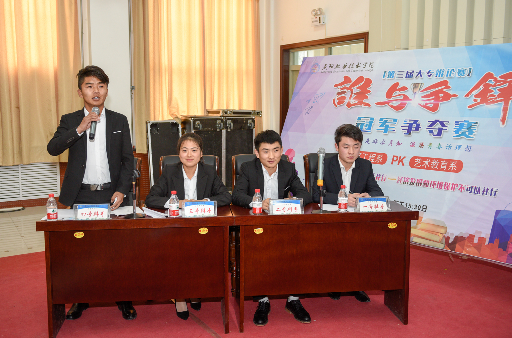 唇枪舌战展英姿,敏思妙语辩是非。 庆阳职业技术学院第三届大专辩论赛于11月29日下午在学院多媒体报告厅举行了总决赛和颁奖典礼, 圆满 落 下帷幕。 决赛评委队伍由宣统部、教务处、学工处、院团委、思政部等部门的负责人组成。院党委书记徐李平、副院长李效鹏、曹强、白旭宁及有关处室、系部、群团组织领导和部分职工莅临总决赛暨颁奖典礼现场,指导、观看比赛并为优胜者颁奖,betway必威官方网站app部部长王晓冰总结讲话。