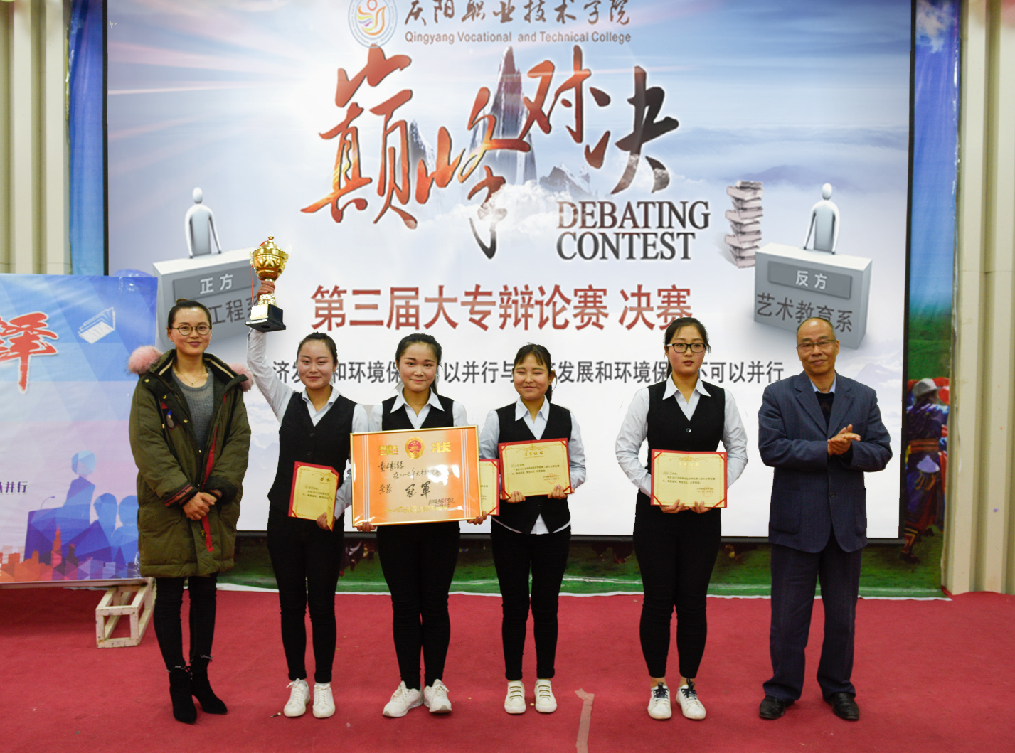 决赛双方志在必得的信心和精彩绝伦表现,为大家呈现了一场高水平思想、智慧与语言的较量。经过评委们认真负责的讨论、打分, 反方艺术教育 系 代表队 摘取了本届辩论赛的桂冠, 建筑工程系 代表队 获亚军 ,能源工程系代表队获季军, 正方 三辩李娜娜获决赛“最佳辩手”。