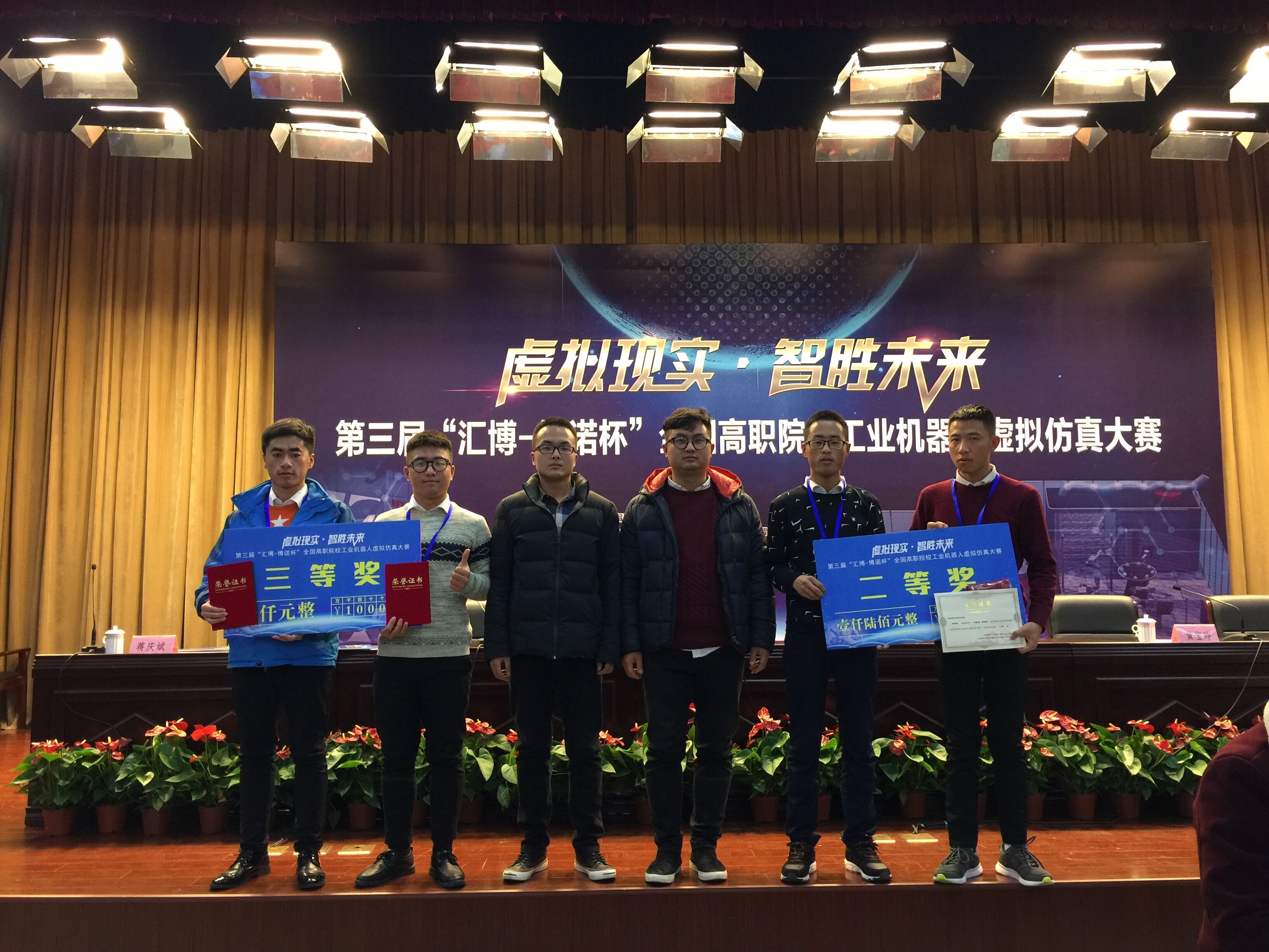 大赛以“虚拟现实、仿真未来”为主题,综合考核学生的工业机器人虚拟仿真技术的应用能力。来自全国14个省,33家高职院校的55支代表队,近200名师生参赛。由学院黄继敏老师指导的刘提笔、董继元所组成的1队获得本次比赛二等奖,由张健老师指导的张庆阳、张浩组成的2队获得三等奖。