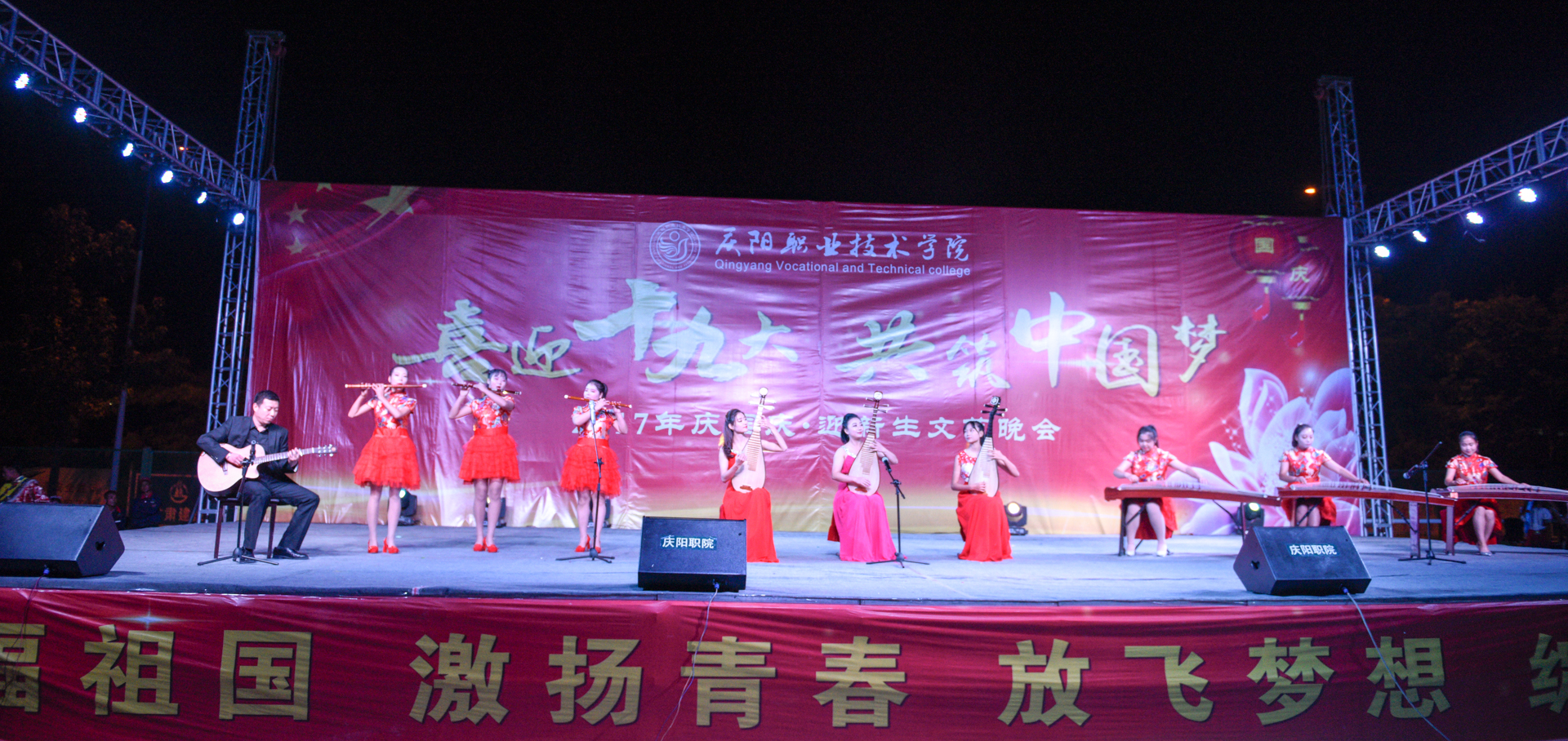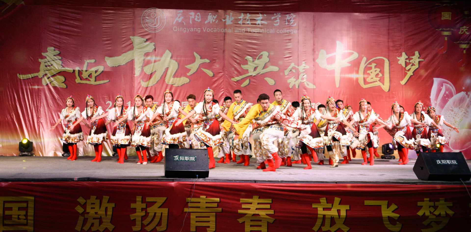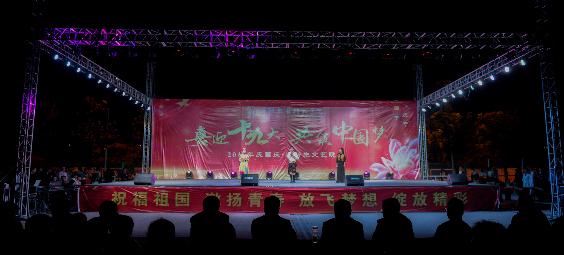 九月的董志塬,秋高气爽,硕果累累。 9月29日晚,学院2017年“庆国庆、迎新生”文艺晚会在学院 体育场 隆重举行。此次晚会由艺术教育系承办,经过半个月的精心策划和筹备,在各部门的大力支持和 学生 们的积极参与下,晚会以“喜迎十九大、共筑中国梦”为主题,给师生带来了一场缤彩纷呈的视听盛宴。学院领导、全体师生员工齐聚一堂,共赏节目,载歌载舞,祝福祖国,放飞梦想。