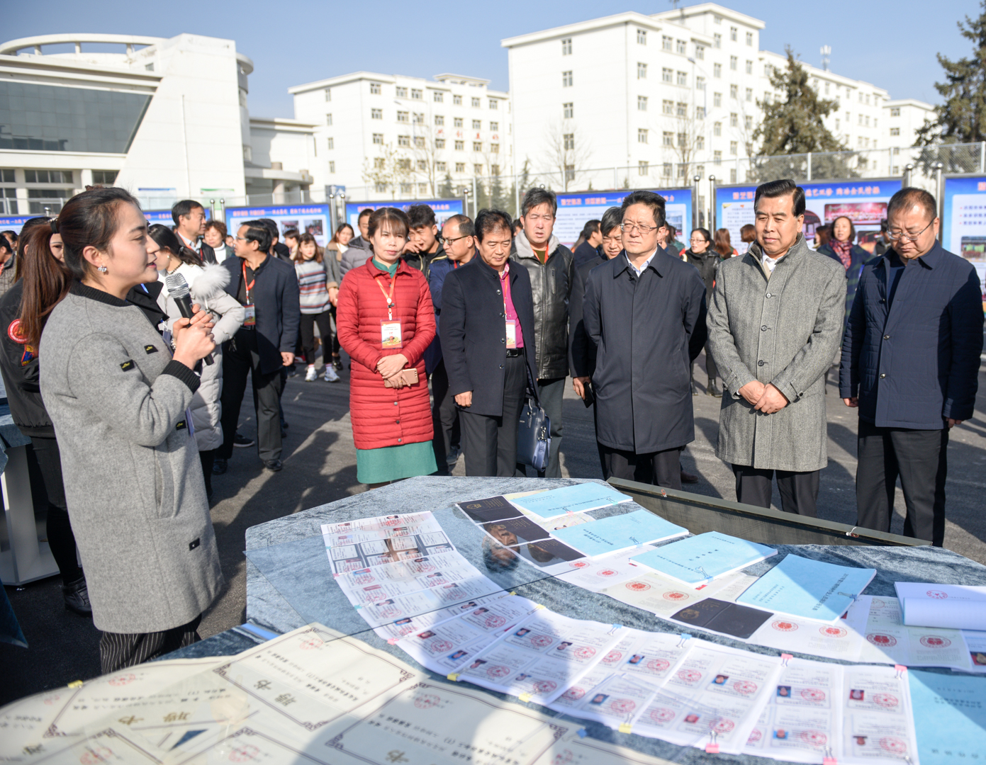 为学习贯彻党的十九大精神,大力推动全民终身学习,努力构建学习型社会,11月23日,甘肃省2017年“全民终身学习活动周”职业教育成果展示活动在庆阳职业技术学院隆重举行。省教育厅副厅长、兰州新区职教园区管委会主任陈保平,省体育局副局长丁慧茹,省广播电视大学副校长熊进,庆阳市委常委、宣传部部长闫晓峰,副市长杨廷祯,省教育厅职成处处长任全春,省民政厅政权处处长罗立农,省职业与成人教育协会副会长王晋,庆阳市教育局党委书记、局长李永洲,副局长韩克旺,职教中心主任马咏红等领导及与会代表1 80 余人出席活动。展示展演活动由庆阳市教育局主办,庆阳职业技术学院承办,庆阳市各县区职业中专等13所职业院校共同参与,通过展示展演庆阳职业教育成果,体现了职业教育对全民终身学习的积极作用。