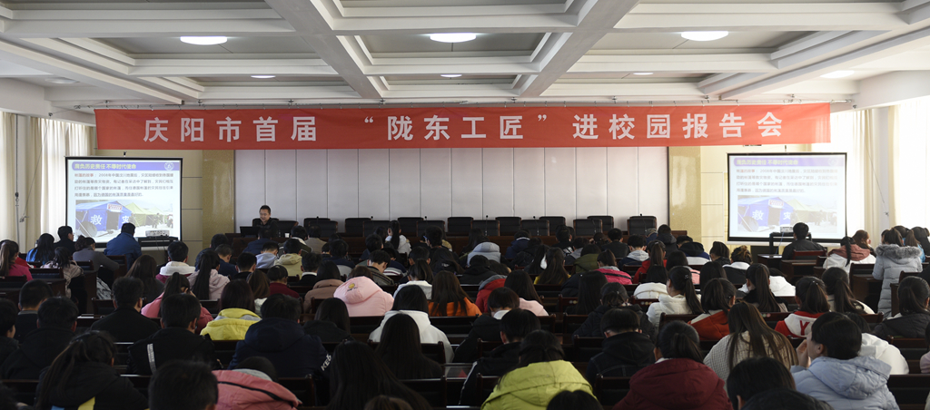 为认真学习贯彻党的十九大精神,大力弘扬劳模精神、工匠精神,充分发挥 “陇东工匠”的示范引领作用,建设一支知识型、技能型、创新型劳动者队伍,营造劳动光荣和精益求精的敬业风气,着力推动科技进步和创新创造,为我市经济社会健康发展培育新动能,根据市总工会的安排,11月24日下午,在五楼会议室成功举办了首届“陇东工匠”进校园报告会。