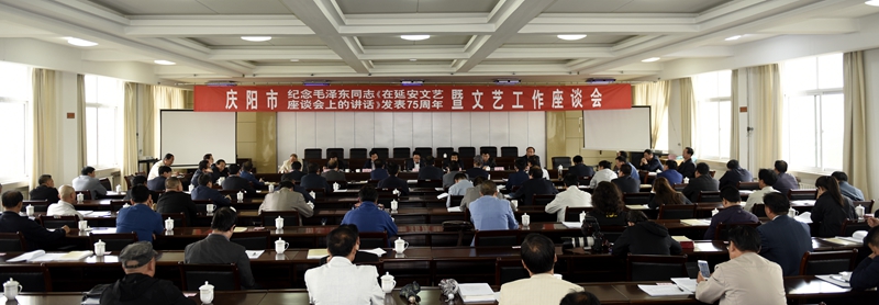 全市文学、影视、剧作、民俗、书法、绘画、音乐、美术、舞蹈、摄影、评论等方面的文艺工作者在会上作了交流发言,以隆重纪念毛泽东同志《在延安文艺座谈会上的讲话》发表75周年,使文艺工作者明确了文艺事业的价值坐标,对推动庆阳文化事业的繁荣和发展具有极大的指导意义。同时,与会人员热烈讨论了《中共庆阳市委关于繁荣发展社会主义文艺的实施意见(征求意见稿)》。