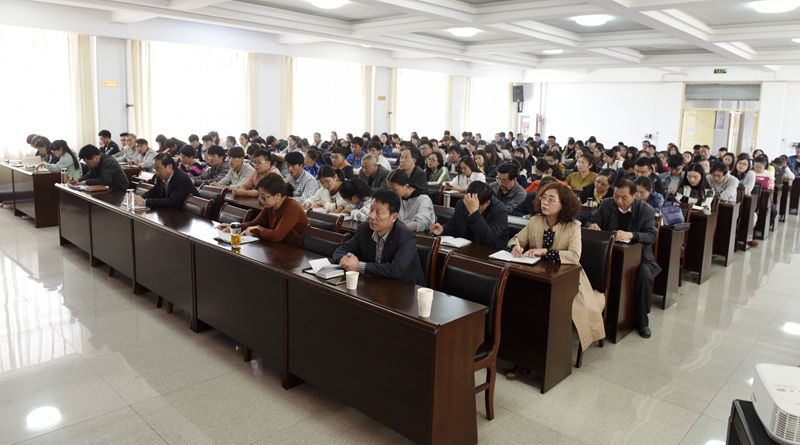 4月24日下午,朱建峰先生为庆阳职业技术学院师生作了主题为“疾风知劲草 板荡识诚臣 —— 艰难时刻基层党员干部的使命与担当 ”的讲座。 学院中层干部、全体党员、入党积极分子、各系团总支干部、班主任、青年教师共四百余人参加 。学院副院长曹强主持讲座。