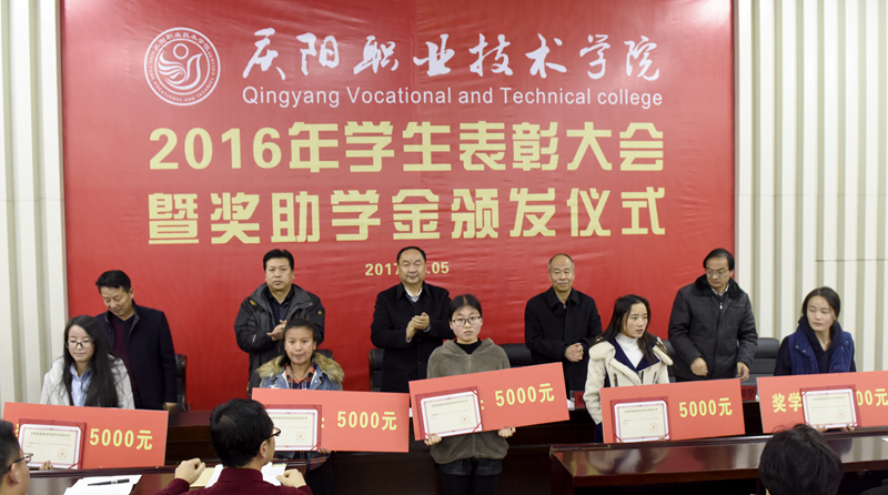 为表彰先进,更好地发挥优秀学生的示范带动和引领作用,1月5日下午,我院在多媒体报告厅举行2016年度学生表彰大会暨奖助学金颁发仪式。院党委书记徐李平、院长席志慧、副院长曹强、白旭宁、武卫东,学工处、院团委、教务处、各系系主任、班主任,获奖学生、受资助学生及学生代表共计400人参加了会议。会议由曹强主持。