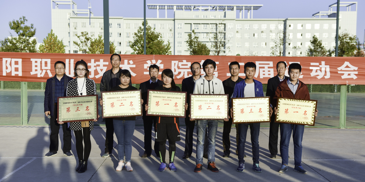 回首本届运动会期间的过往,催人奋进!师生团队赛出了职院精神,赢得了满满荣誉:颁奖典礼前,园丁职工队——学生校队、女子冠军队——体育系女队为全体师生表演了激烈精彩的“师生友谊赛”。在闭幕式上,苟怀杰宣布了本届运动会比赛成绩及获奖团体、个人。经过激烈的赛场角逐,在篮球项目中,建工系学生男子组摘得桂冠,机械系、经管系分获第二、三名,艺术系、护理系、经管系分居学生女子组一、二、三名;机械系、建工系、能源系夺得教工男子组冠、亚、季军,能源系、机械系获教工女子组一、二名。在拔河项目中,学生男子组前三名依次为建工系、机械系、经管系,艺术系、护理系、建工系分别夺得学生女子组前三名;学工保卫处联队、建工系、机械系分获教工男子组前三名,艺术系、能源系、经管系分居教工女子组前三名。在乒乓球项目中,尹照隆、杨炬、黄志峰为学生男子组前三名,车敏敏、刘莹、包春晓为学生女子组前三名;段晓东、张承峰、高志强夺得教工男子组前三名,白一静、丁发红、杨阳夺得教工女子组前三名。此外,机械系、经管系获优秀组织奖,艺术系、护理系获体育道德风尚奖,杨三宁、何百平等八名教师被评为“先进工作者”,邵吉庆等八名教师获“优秀裁判员”奖。与会领导为获奖团体和师生颁奖。