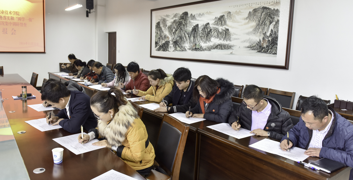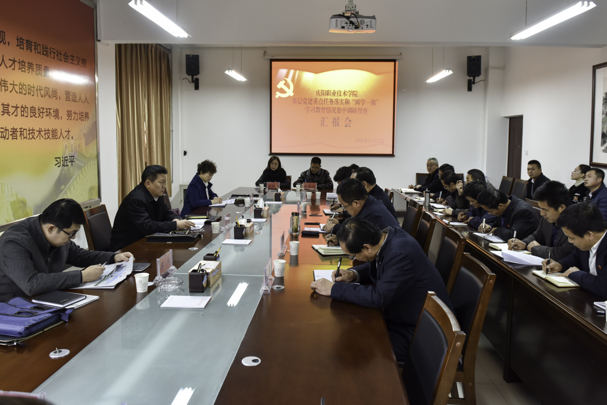 汇报会上,刘副厅长对此次检查工作进行了安排部署,并通报了全省高校党建工作中存在的普遍性问题。院长席志慧从基层党组织、党员队伍、党内民主、党风廉政建设和开展“两学一做”学习教育、抓党建促教学等方面作了专题汇报。