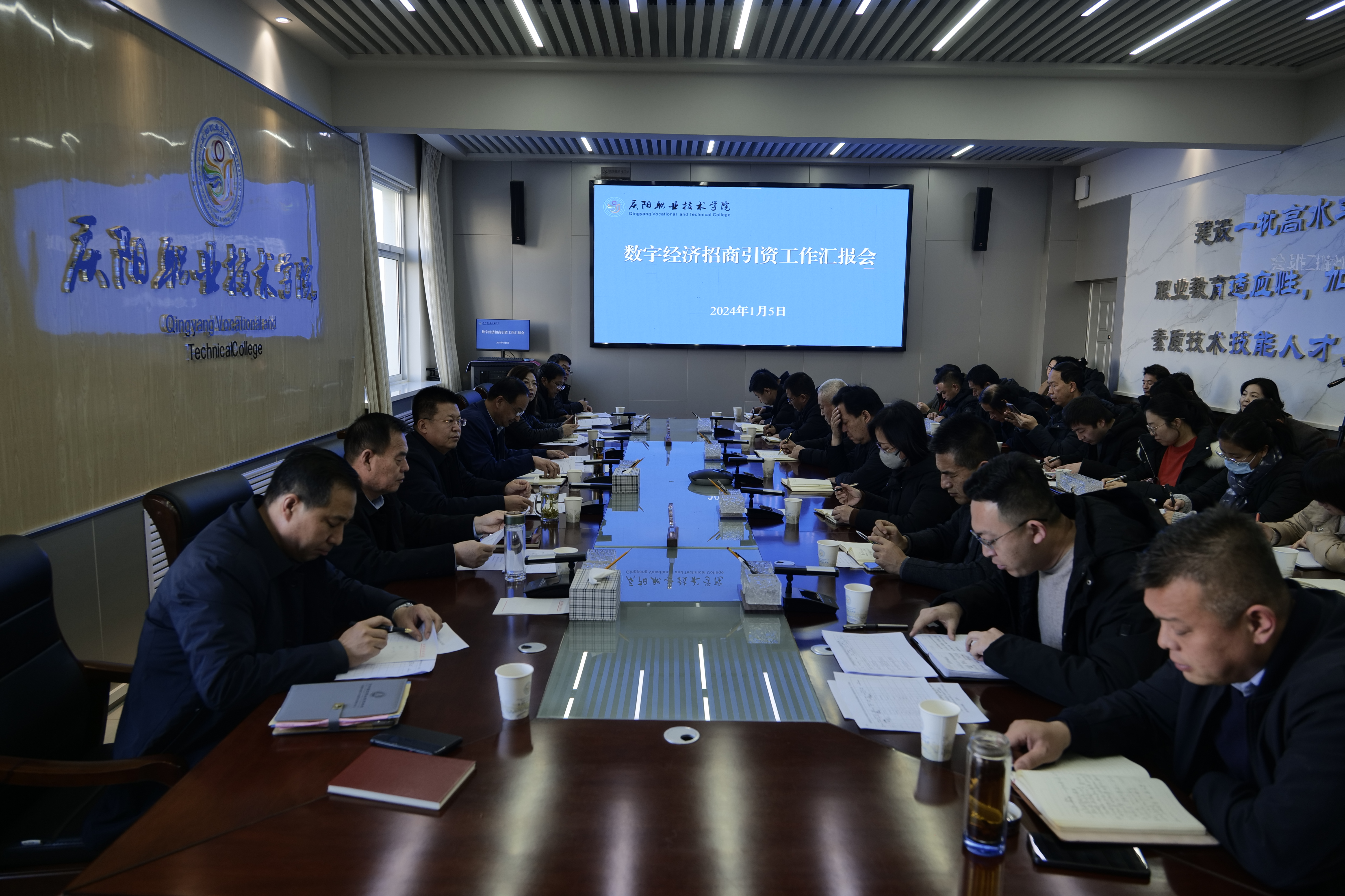 1月5日,学院召开数字经济招商引资工作汇报调度会,专题研究数字经济招商引资工作。通过听汇报、找差距、谈认识、加压力、找办法、鼓干劲。学院在家班子成员、各党支部、各党政机构、群团组织和教学教辅机构负责人参加会议。党委副书记、院长白旭宁主持会议。