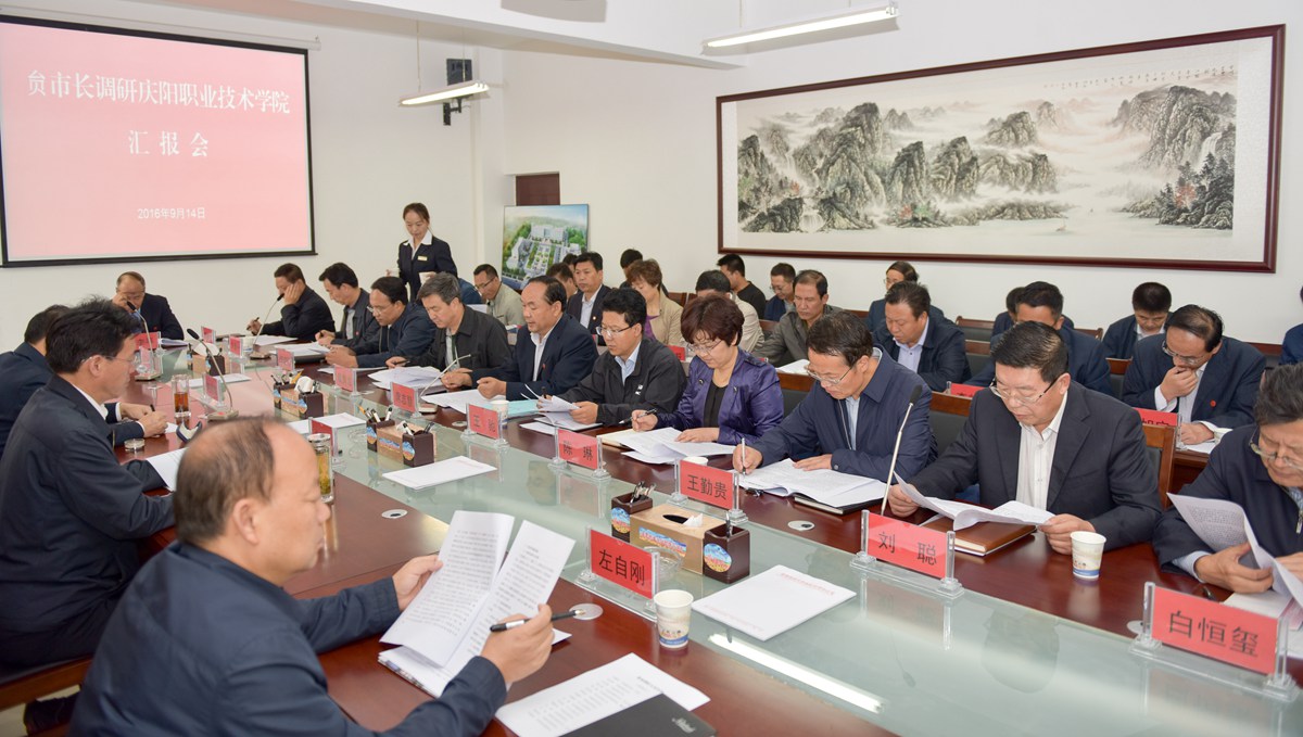 9月14日上午,市委副书记、市长贠建民,副市长赵昌军,市政府秘书长左自刚、副秘书长贺立峰带领市编办、发改委、教育局、财政局、人社局、住建局、卫计委、规划局、体育局、区委等部门主要负责人来学院进行专题调研,现场解决学院发展过程中遇到的问题,并安排部署学院建设发展工作。