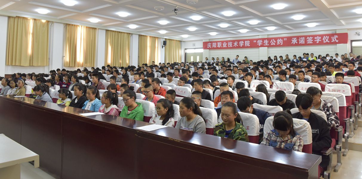 9月28日下午,我院的978名在校中职学生参加了由学生工作处组织的《中等职业学校学生公约》签署仪式。副院长白旭宁、武卫东,院团委书记罗伟、副书记胡霞,学生工作处处长李永刚、副处长张亚凤及各系系主任出席签约仪式。