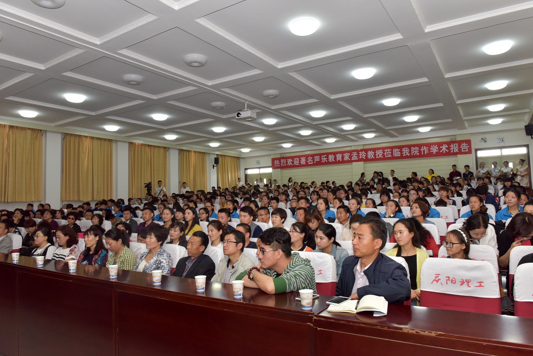 2016年6月6日上午, “ 庆阳职院大讲堂 ” 第五期在学院阶梯教室开讲。学院 领导、 师生及庆阳音乐界 人士 400多人聆听了 著名声乐教育家、解放军艺术学院硕士研究生导师 、 教授孟玲老师的讲座。 总装备部女高音歌唱家梁辰、中国歌剧舞剧院青年男高音歌唱家毋攀出席报告会。