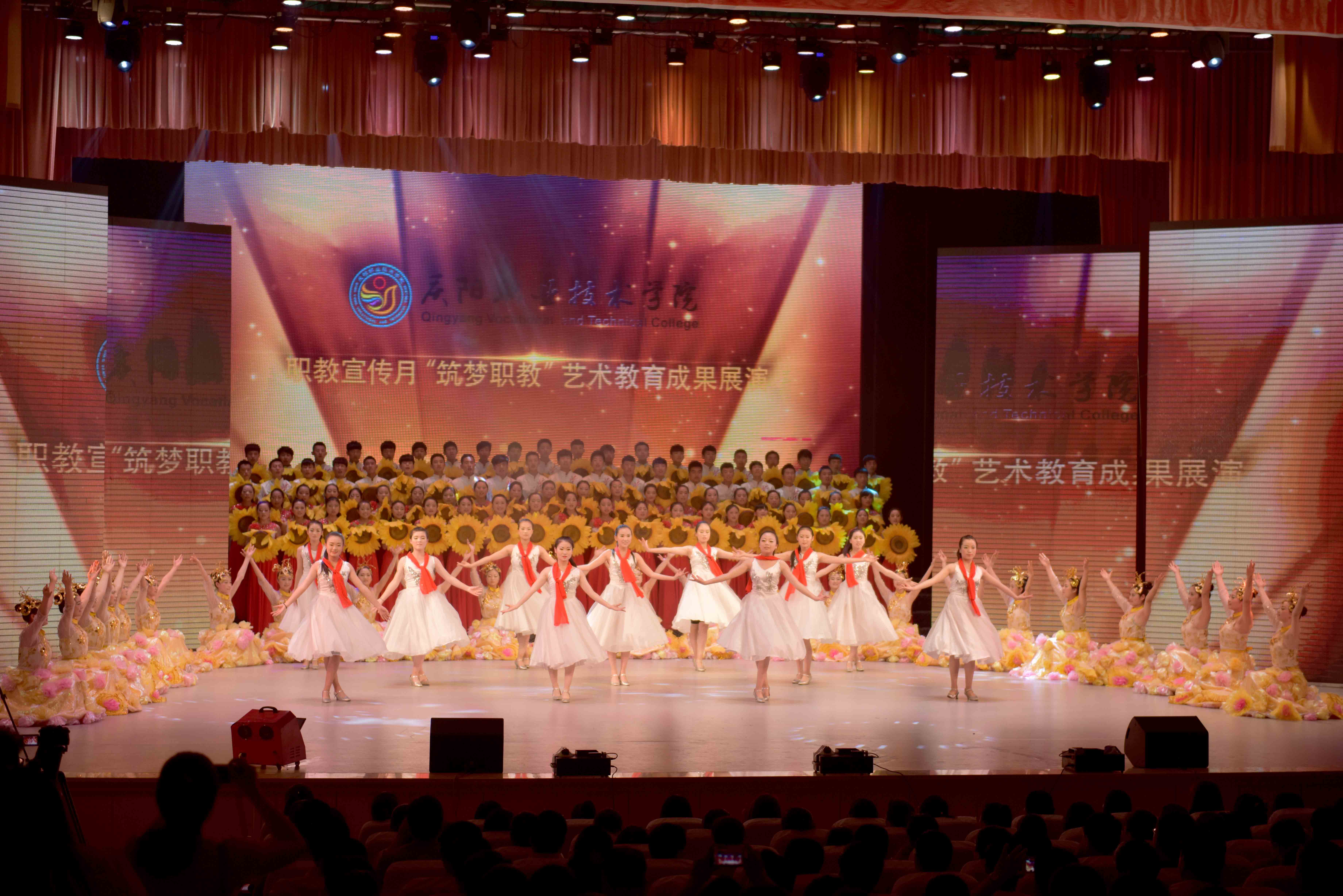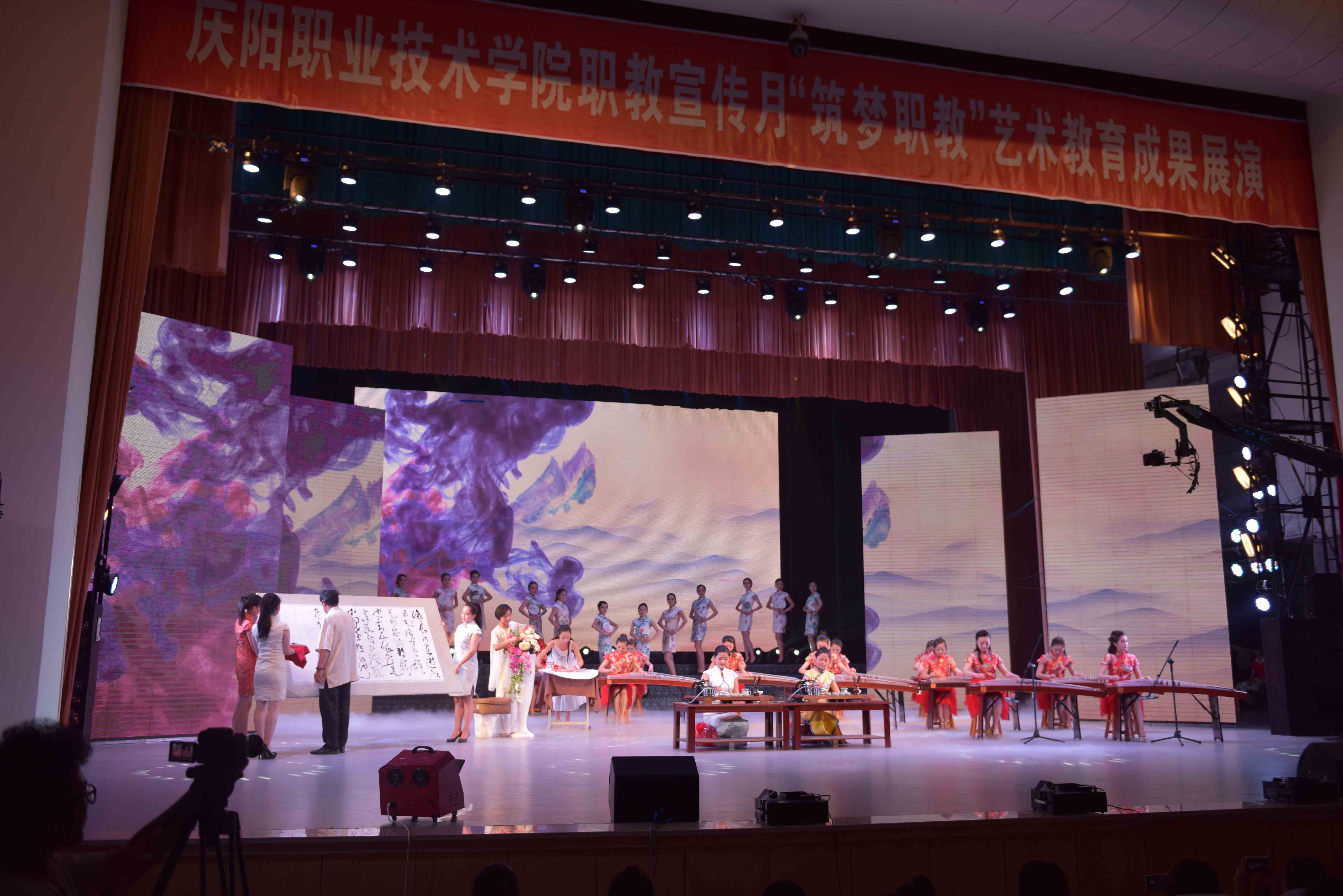 为深入贯彻全国、全省职业教育工作会议精神,围绕“弘扬工匠精神,打造技能强国”和“发展职业教育,成就多彩人生”的活动主题,宣传庆阳职业技术学院的专业特色和办学成果,向社会充分展示职业教育的风采,2016年6月13日,庆阳职业技术学院在市政府礼堂举办2016年职业教育宣传月教育教学成果展示暨“筑梦职教”艺术展演活动。