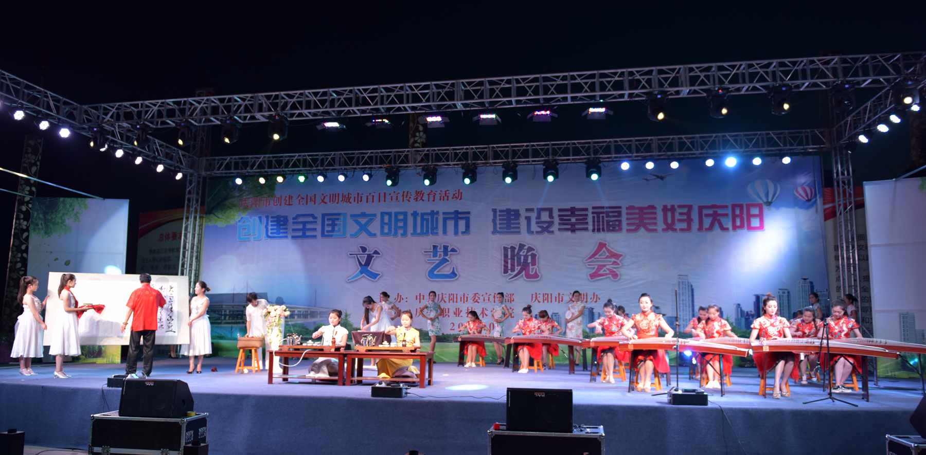 为了推动庆阳市全国文明城市创建工作,鼓舞全市干部群众热爱庆阳、建设庆阳的豪情和干劲,按照市委宣传部、市文明办安排部署,2016年7月3日晚,庆阳职业技术学院在市和谐广场成功举办了“创建全国文明城市·建设幸福美好庆阳”为主题的专场文艺演出。