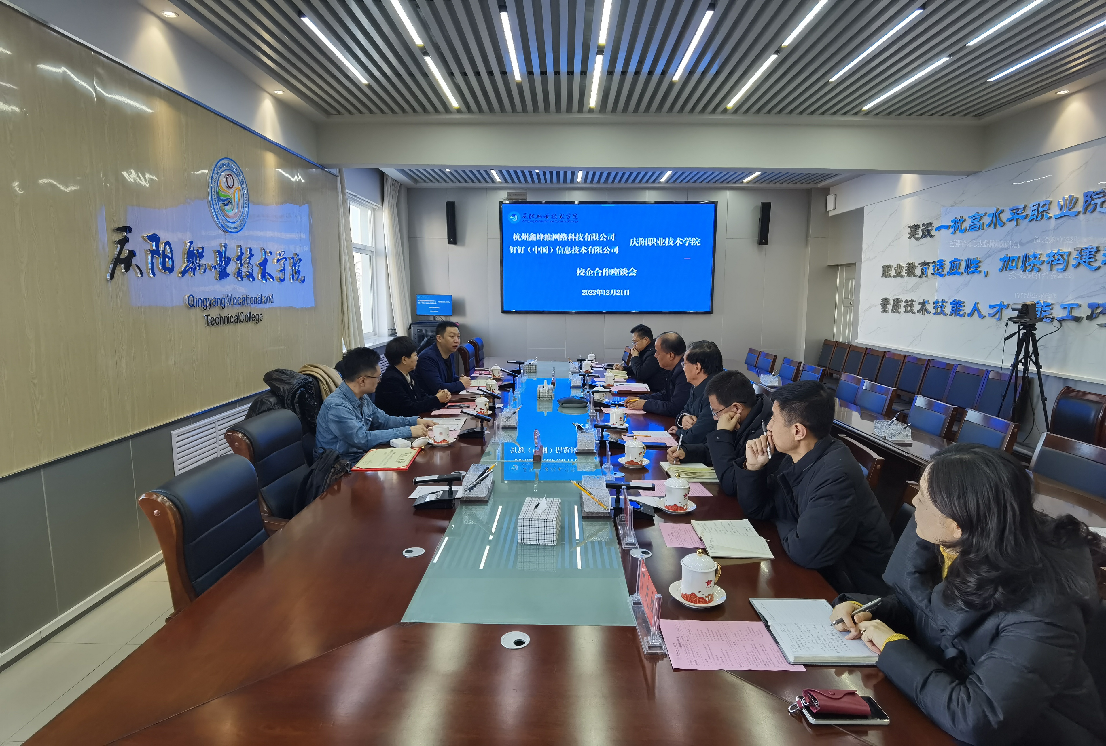与会人员共同观看了学院宣传片,白旭宁为史楠、林伟星颁发了庆阳职业技术学院客座教授聘书,史楠从企业发展、技术研发、运营服务等方面介绍了企业基本情况。与会人员围绕市政府主要领导关于项目合作的要求,就申办数字经济人才培养基地、开展数字化管理师培训认证、建设市域产教联合体和行业产教融合共同体、共建产业学院等进行了深入交流探讨,达成了合作共识。