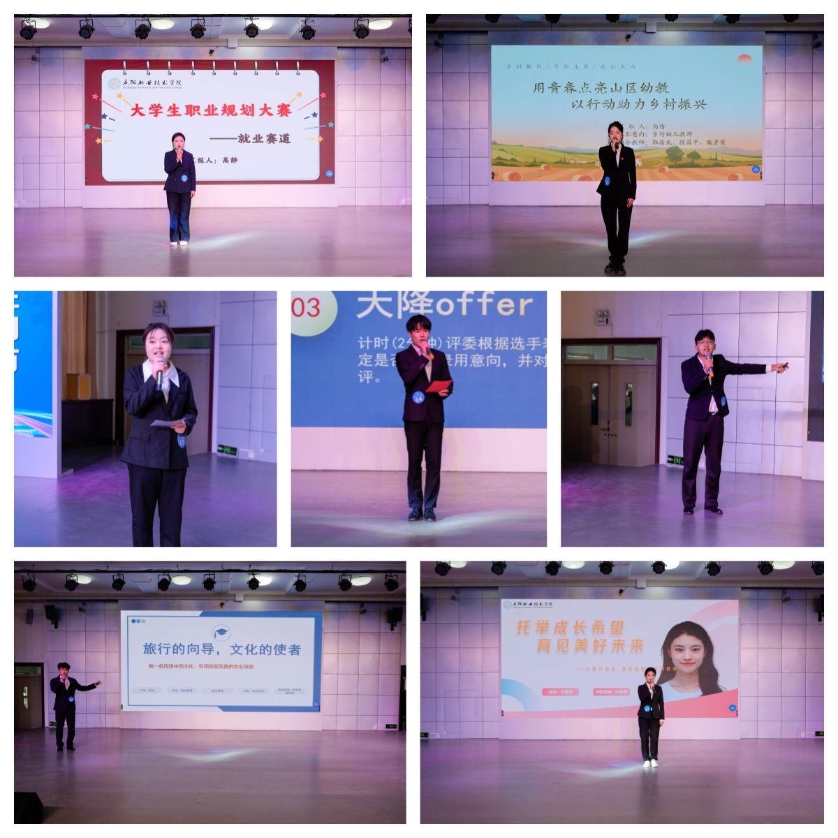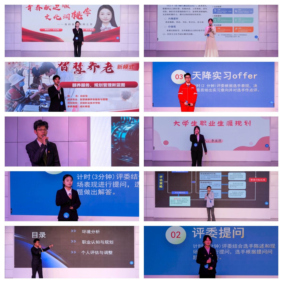 大赛以“筑梦青春志在四方,规划启航职引未来”为主题,分为成长、就业两个赛道。大赛自11月启动以来,吸引在校师生积极参与,每个赛道由各教学单位选送作品,经过班级初赛、教学单位复赛等环节,共有17位选手晋级入围校级决赛展示。