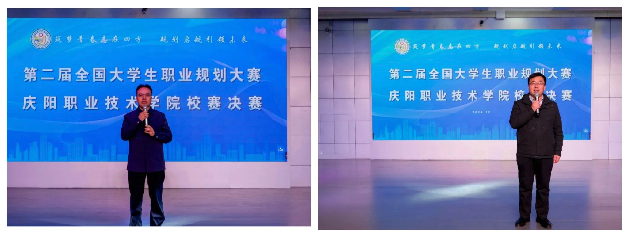 学院党委书记张建军,省级创业导师、市城乡就业局副局长王海潮现场点评指导。此次大赛为学生提供了展示个人才华的平台,有力地激发了学生的生涯规划意识,显著提升了学生的就业能力。学院将以本次赛事为契机,进一步深挖就业育人与职业生涯发展工作内涵,发挥“以赛促学、以赛促教、以赛促就”作用,将职业规划大赛打造成富有庆阳职院特色的生涯教育“新课堂”、就业指导“新平台”、校企合作“新渠道”,广泛引导学生树立正确的职业观、就业观和择业观,增强职业规划意识,指导其及早做好就业准备,为顺利走向职场、开启职业生涯奠定了坚实基础,促进毕业生高质量充分就业。