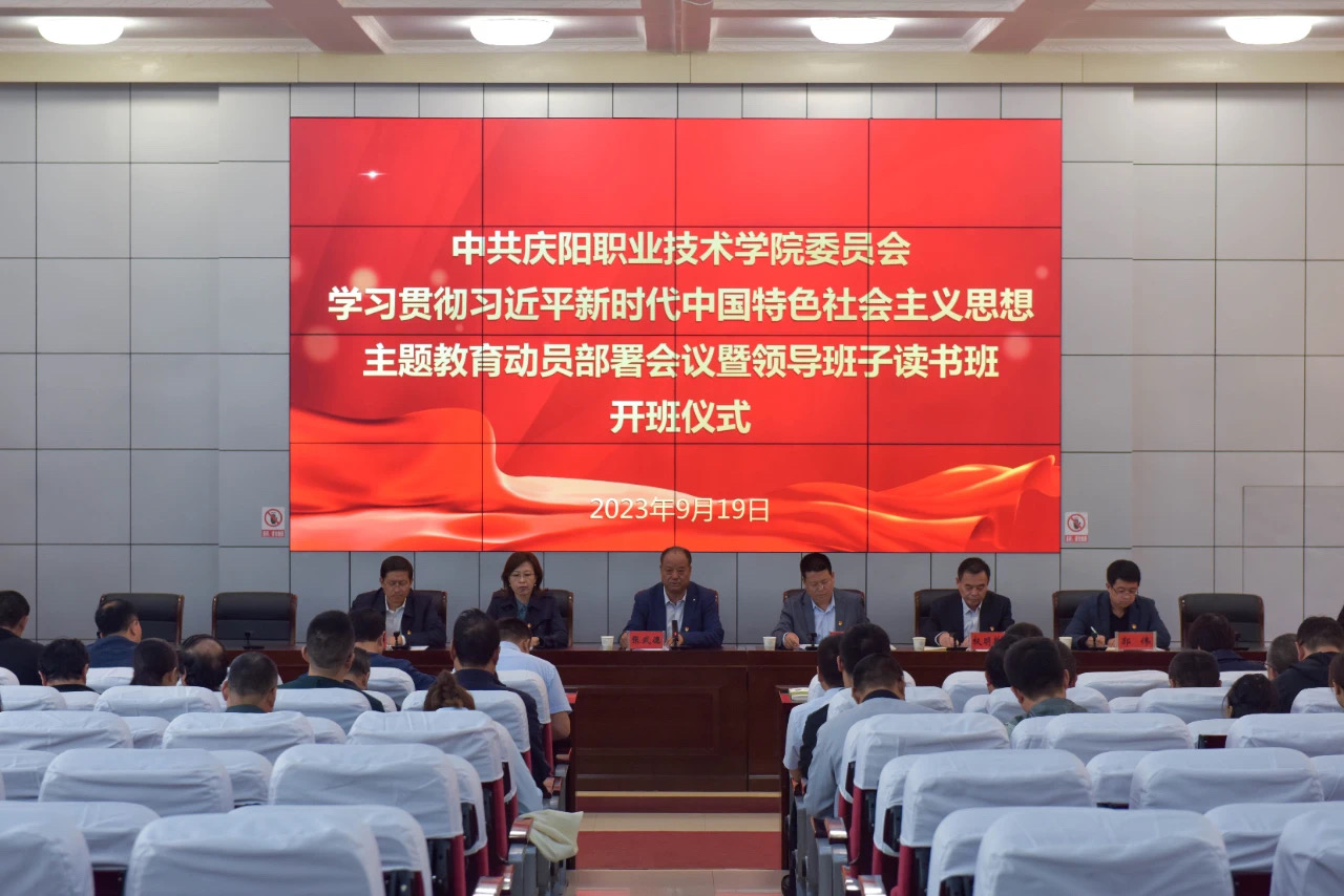 9月19日,庆阳职业技术学院党委举行学习贯彻习近平新时代中国特色社会主义思想主题教育动员部署会议暨领导班子读书班开班仪式。党委书记张武德主持会议并讲话。