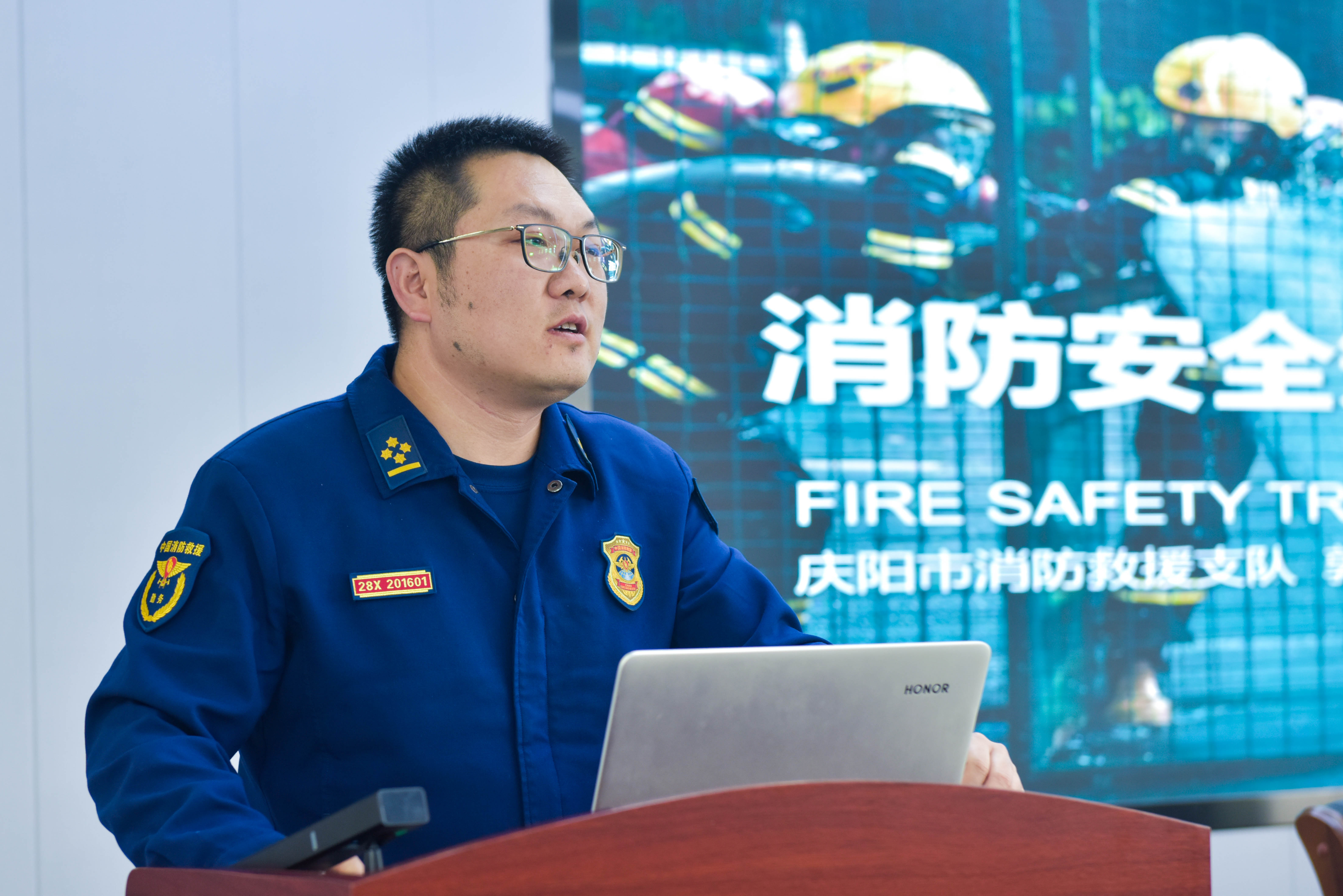 为了提高学院全体职工消防安全意识和应急处理能力,保障师生员工生命财产安全。10月17日下午,学院邀请消防专家西峰区消防救援大队工程师,专业技术一级指挥员郭儆雄在树人楼五楼会议室开展“增强消防安全意识 构建和谐平安校园”主题消防安全知识培训会。会议由党委委员、副院长王志强主持,学院在家领导和全体中层干部、实训室管理员、校内服务企业负责人及员工代表共计160余人参加。