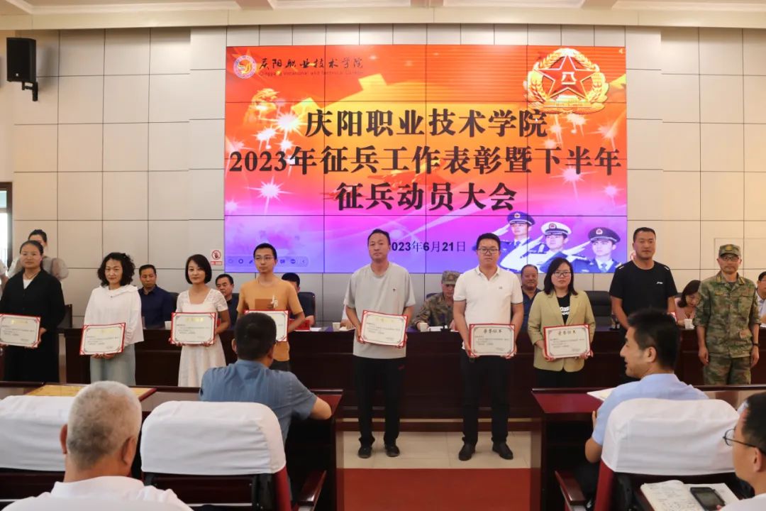 6月21日下午,学院在多媒体报告厅召开2023年征兵工作表彰暨下半年征兵动员大会,庆阳军分区动员处上校处长殷开荣、西峰区常委、人武部政委李小林,学院党政领导张武德、白旭宁、胡志玉、王婕、 权明敏、王志强、李建杰出席会议,相关部门负责人、全体班主任及学生代表共计300余人参加会议。会议由党委副书记、院长白旭宁主持。