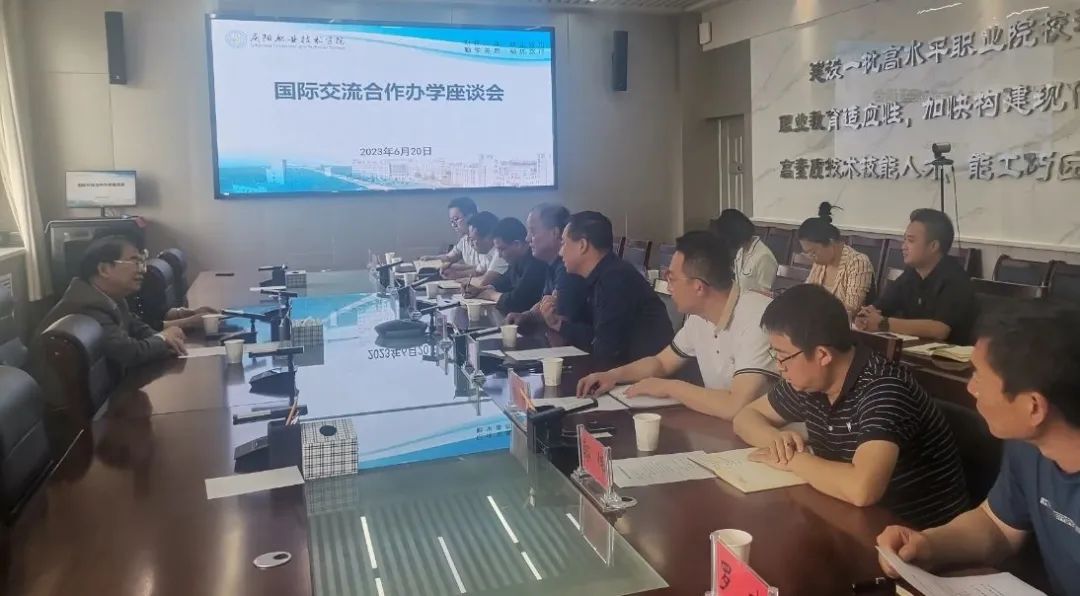 6月20日上午,庆阳职业技术学院召开国际交流合作办学座谈会,德中文化经济联合会中国事务会长温舟、会长助理王若帆,学院党委书记张武德,党委委员、副院长李建杰,教务处、招生就业处及各系(院)主要负责人参加,会议由李建杰主持。