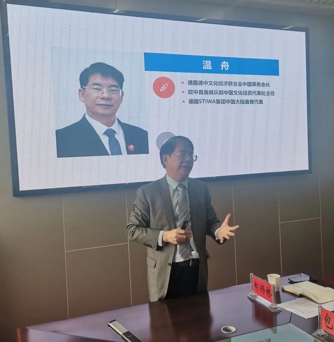 温舟对学院为此次交流洽谈的支持表示感谢,他着重介绍了德中联合会的发展建设、教育办学、国际合作、未来发展等方面情况,以及开展国际合作办学与国际交流的成功经验和在中国落地实施的多个项目,真诚希望通过与学院开展更多方面国际交流与合作,助力推动双方建设发展水平,培养更多优秀应用型、研究型国际化人才。