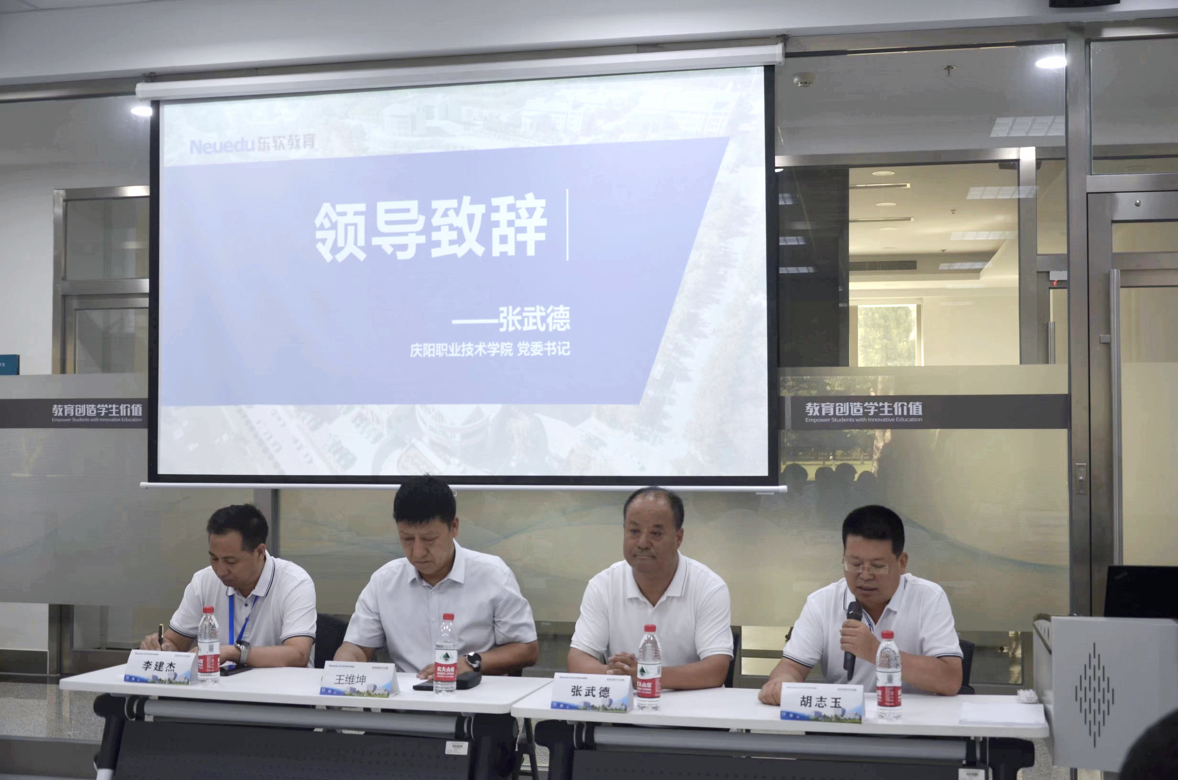 “水本无华,相荡乃生涟漪;石本无火,相击而发灵光。”为进一步提升管理干部综合素养及服务“东数西算”项目建设能力水平,在东软教育科技集团的大力支持下,庆阳职业技术学院第二期“东数西算”数字素养能力提升高级研修班于8月8日在大连东软信息学院软件园区开班,学院31名管理干部和专业教师参加本次培训。东软教育科技集团高级副总裁王维坤,党委书记张武德、党委委员、副院长李建杰出席开班仪式,党委副书记胡志玉主持会议。