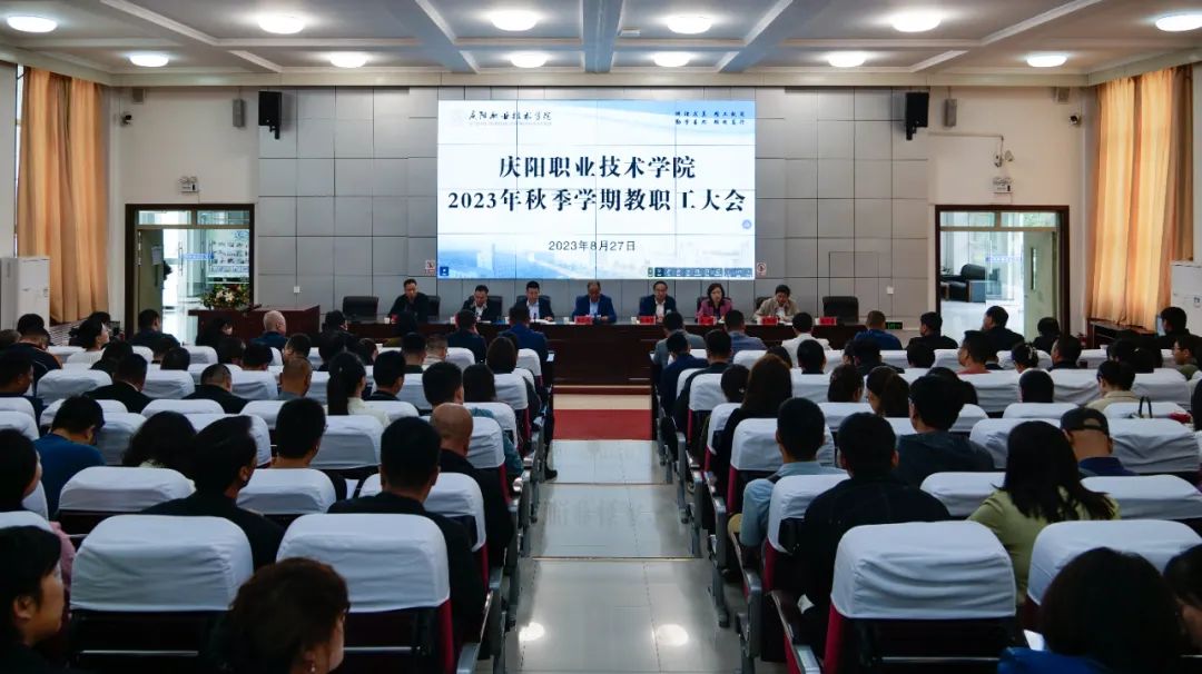 8月27日上午,学院在多媒体报告厅召开2023年秋季学期开学教职工大会,院领导班子成员、全体教职工及校内服务企业负责人参加。会议由党委副书记胡志玉主持。